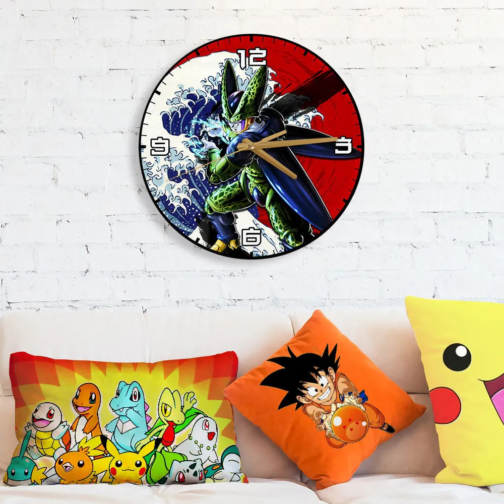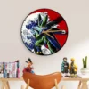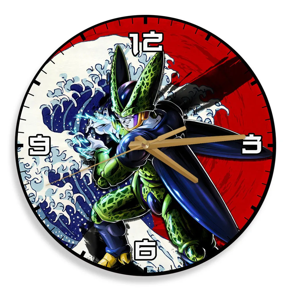 Perfect Cell Kanagawa Wave Red Sun Anime Wooden Wall Clock