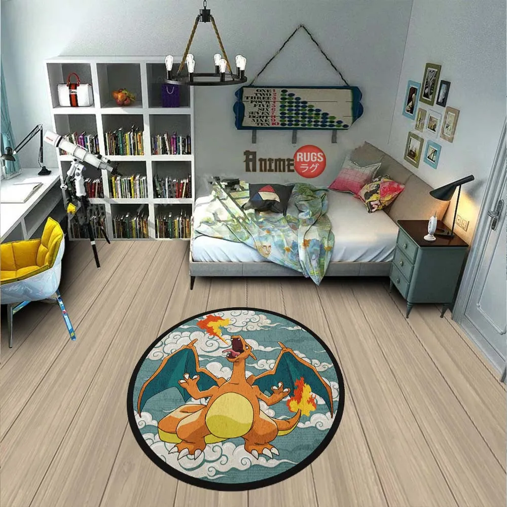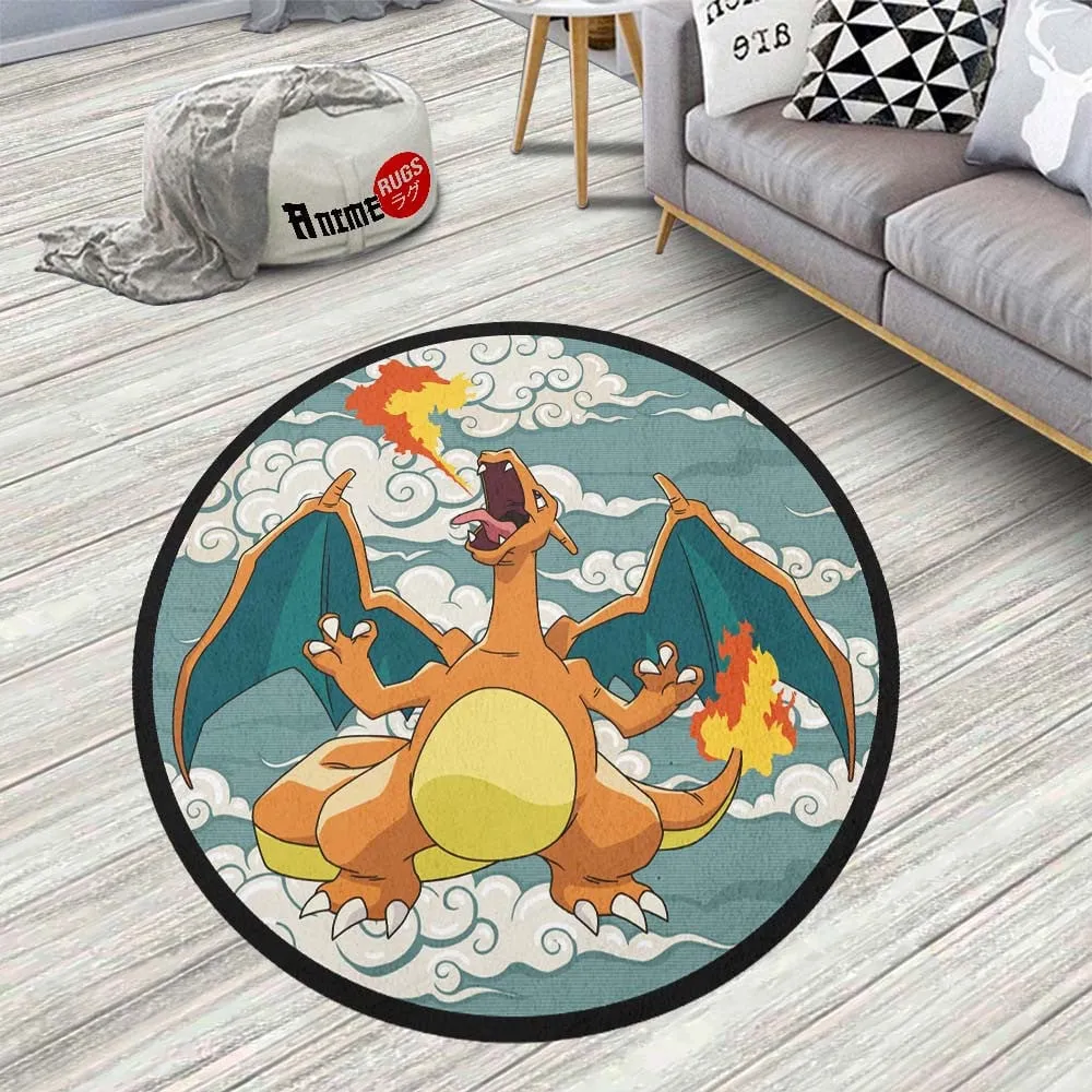 Pokemon Charizard Round Rug Custom Cloudy Sky Anime Room Mats