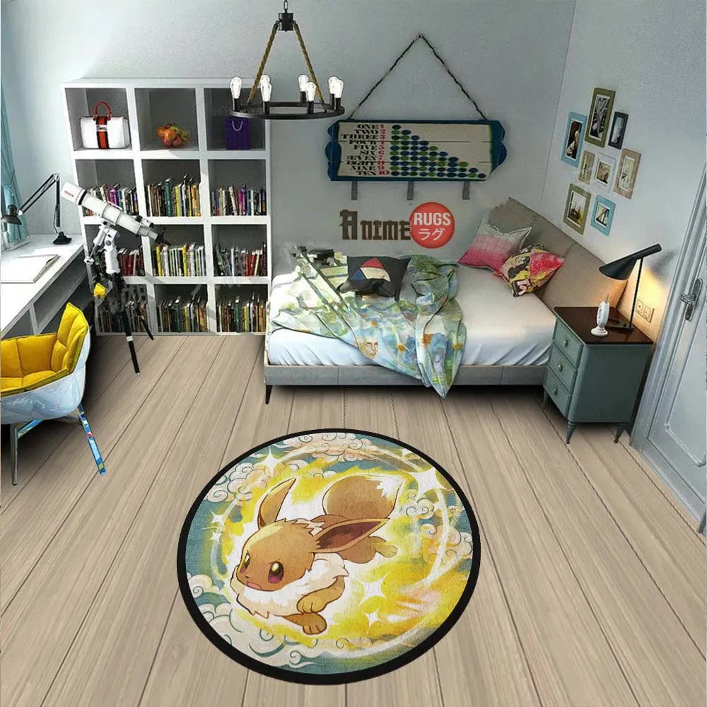 Pokemon Eevee Round Rug Custom Cloudy Sky Anime Room Mats