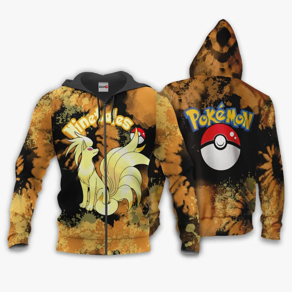 Pokemon Ninetales Zip Hoodie Custom Anime Tie Dye Style