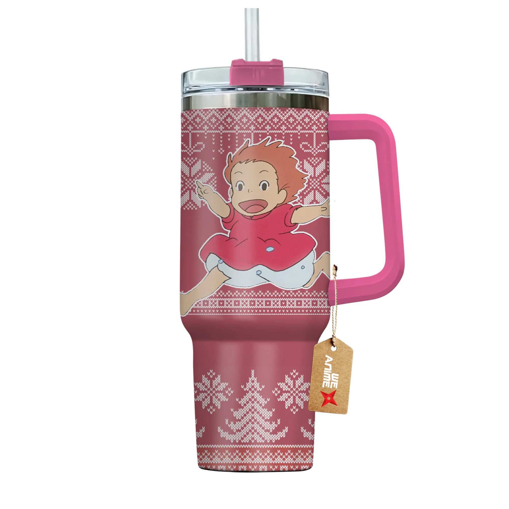 Ponyo 40oz Travel Tumbler With Handle Custom Anime Accessories