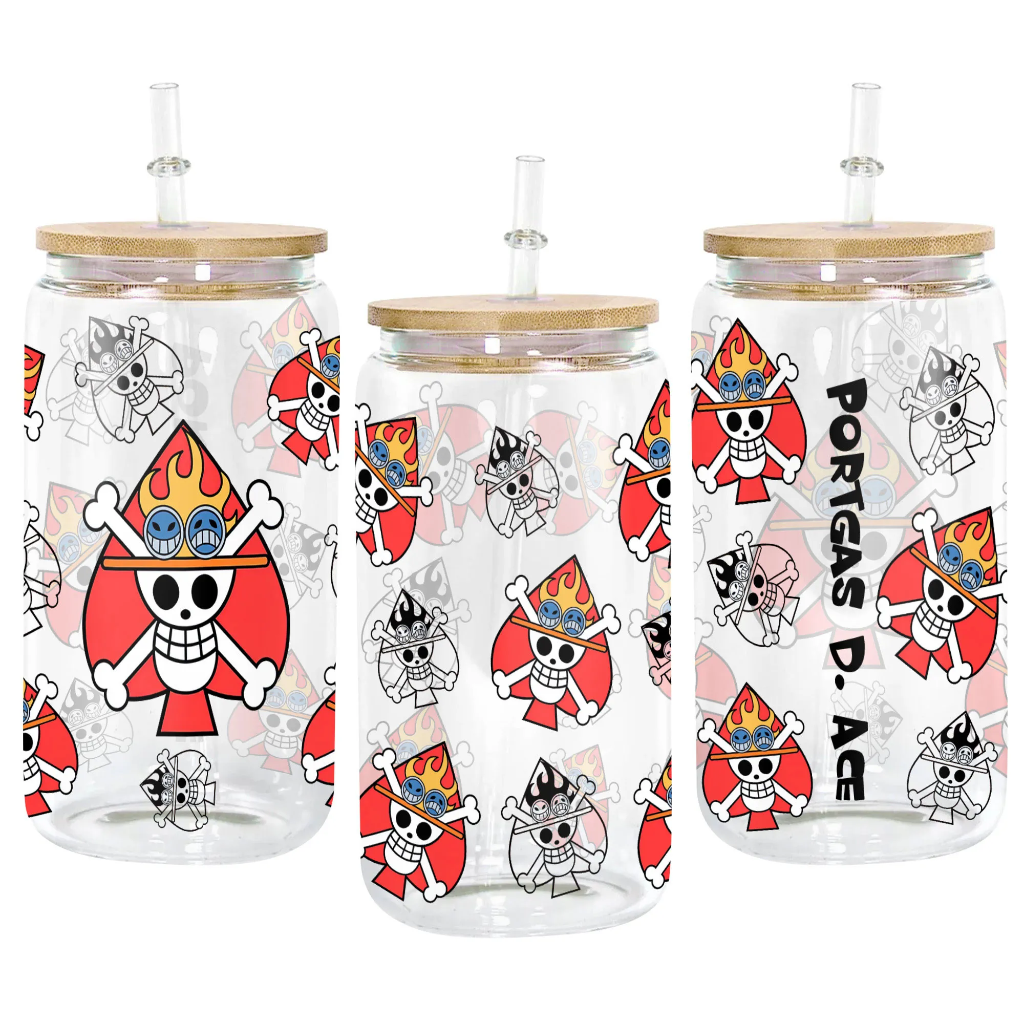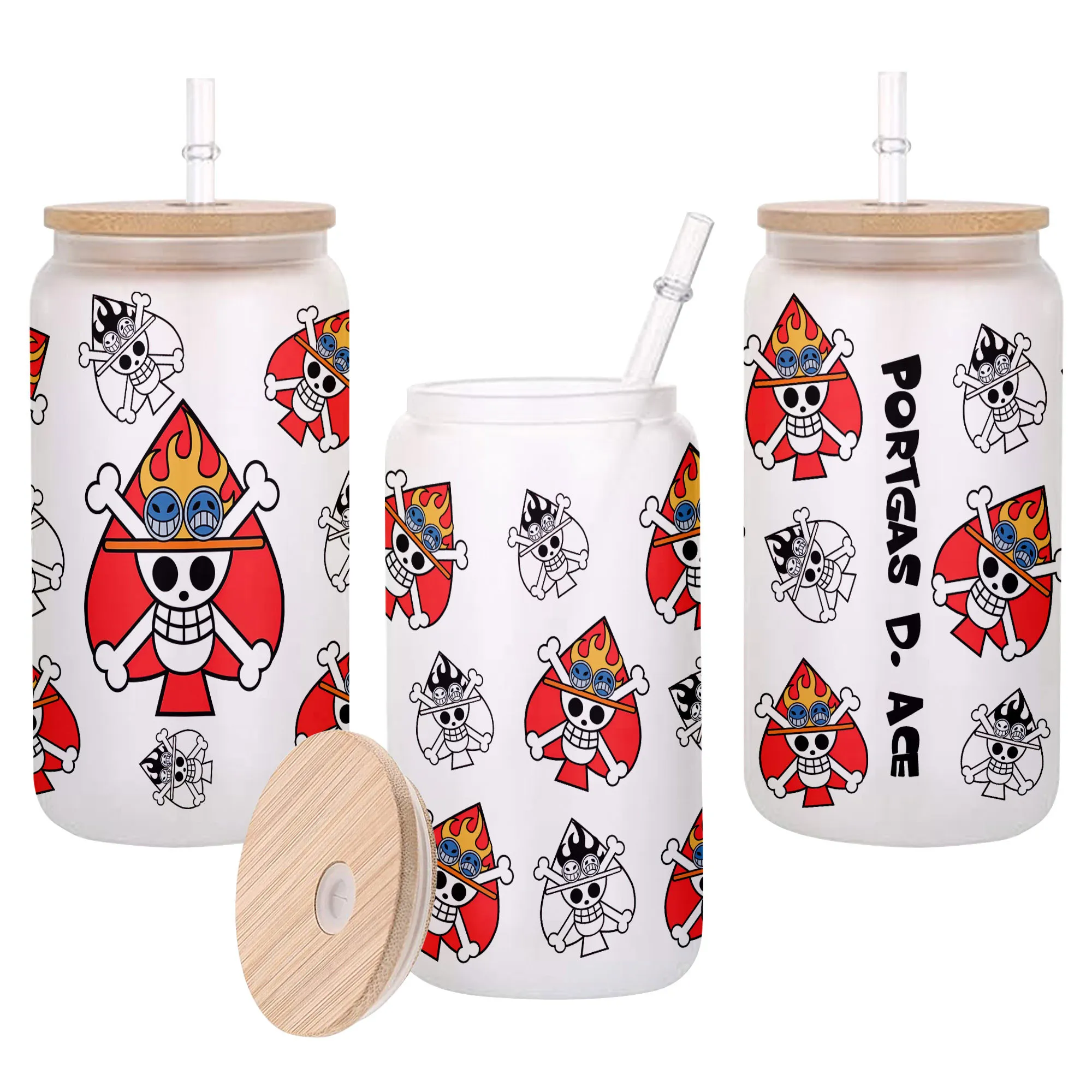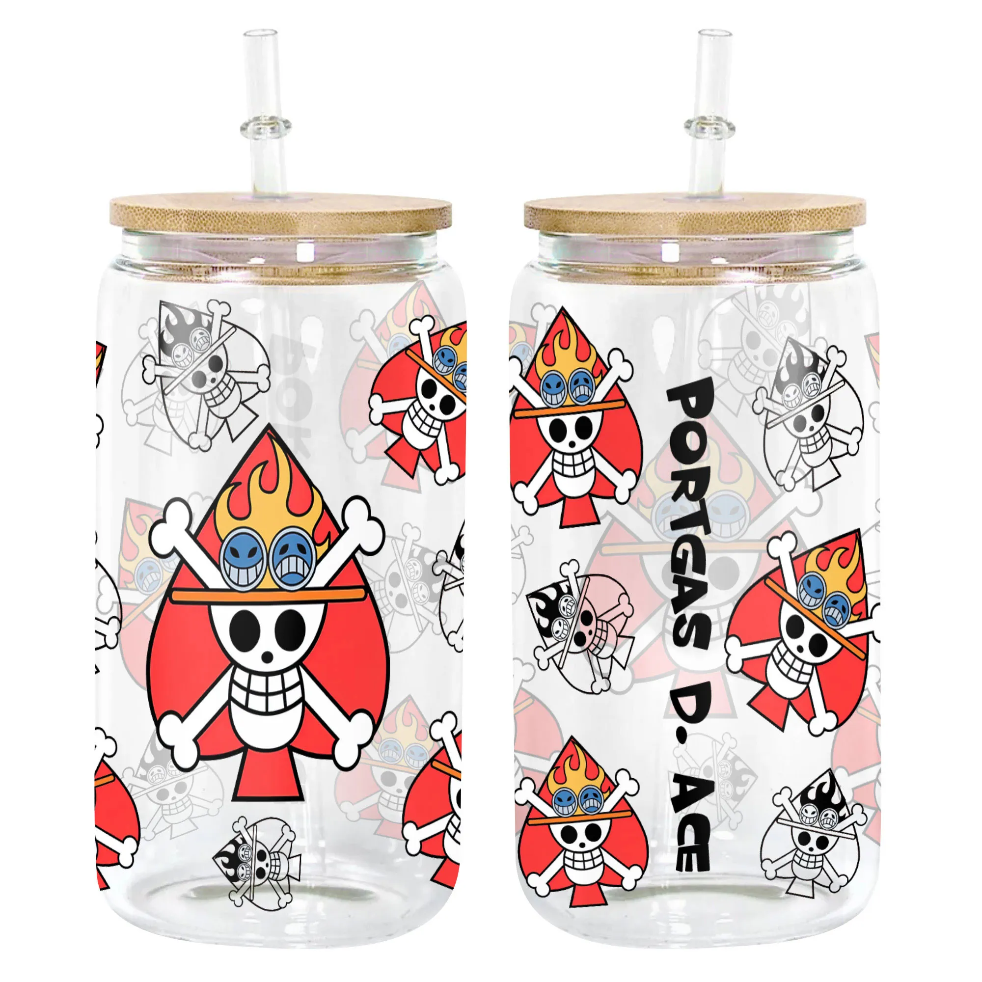 Portgas D. Ace Glass Can 16oz Anime Personalized Name