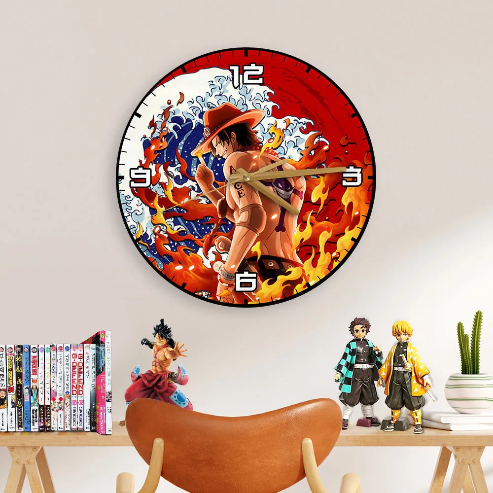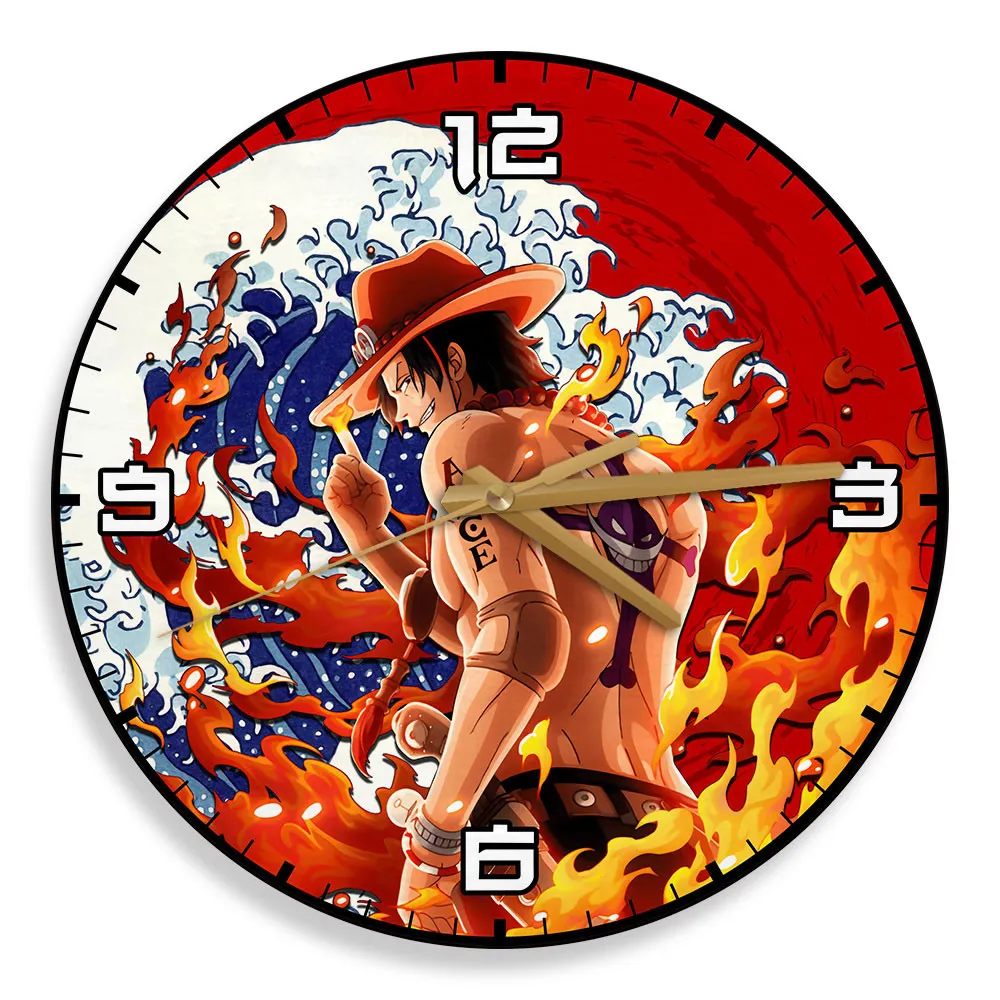 Portgas D. Ace Kanagawa Wave Red Sun Anime Wooden Wall Clock-Wexanime