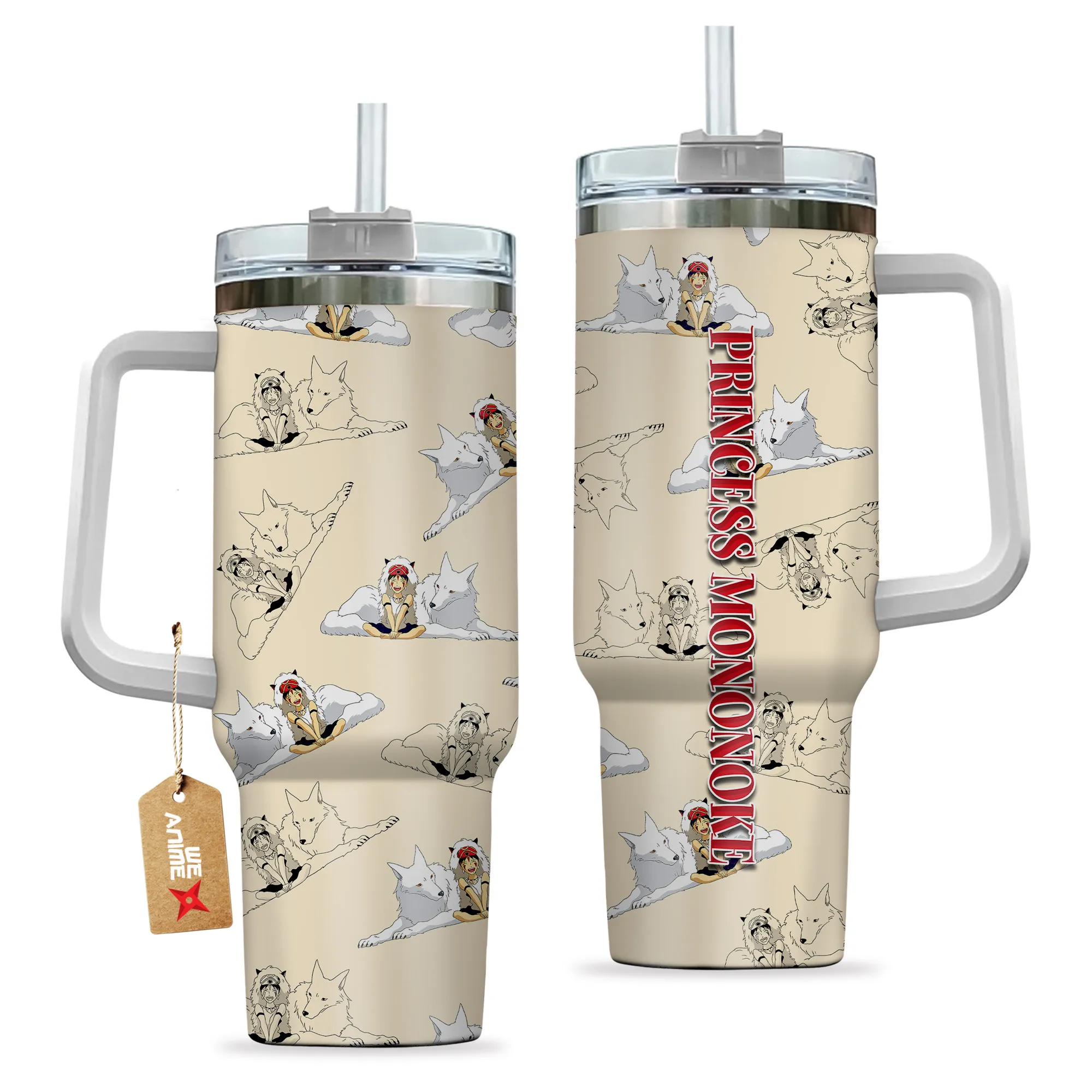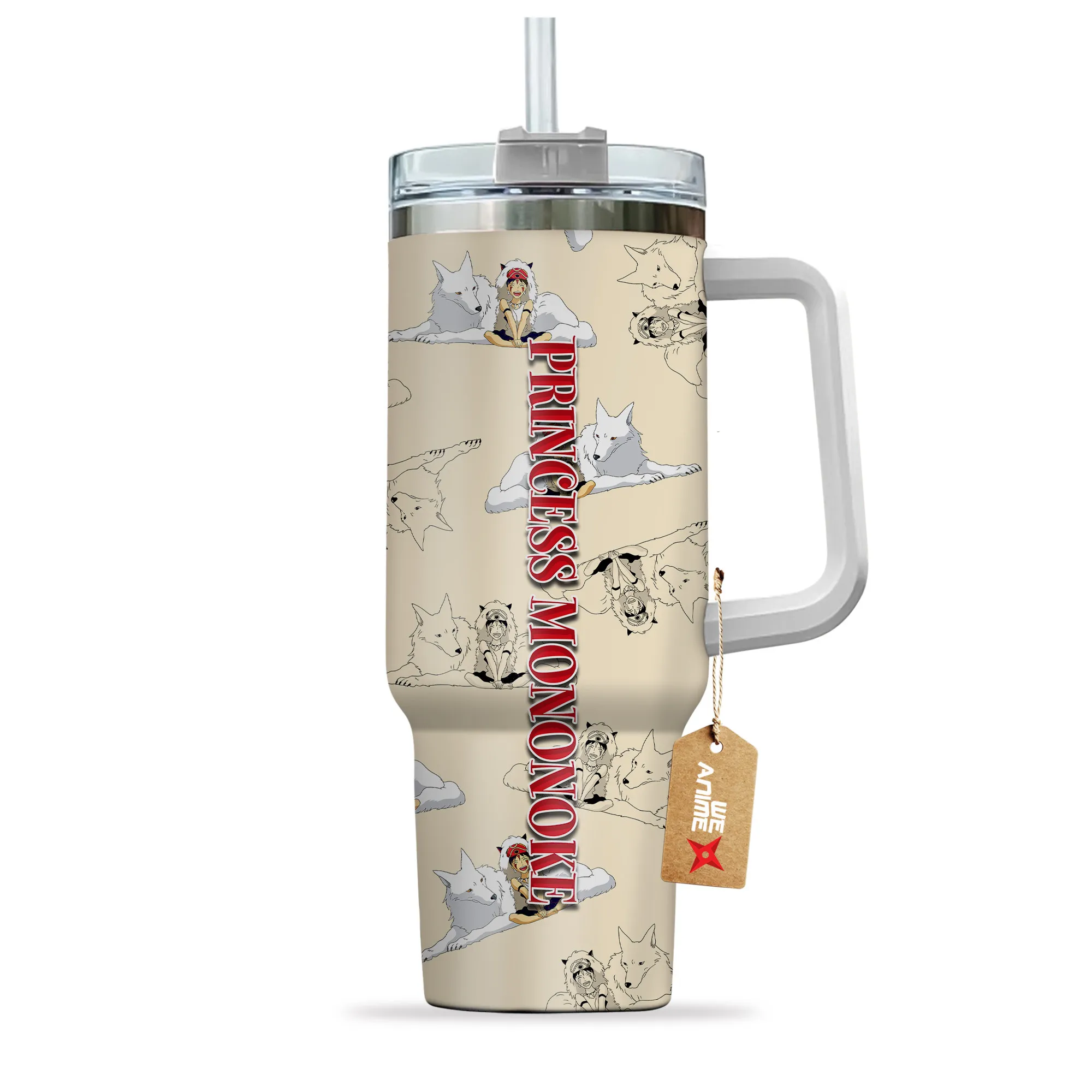 Princess Mononoke Mask 40oz Tumbler Cup With Handle Custom Cute Pattern