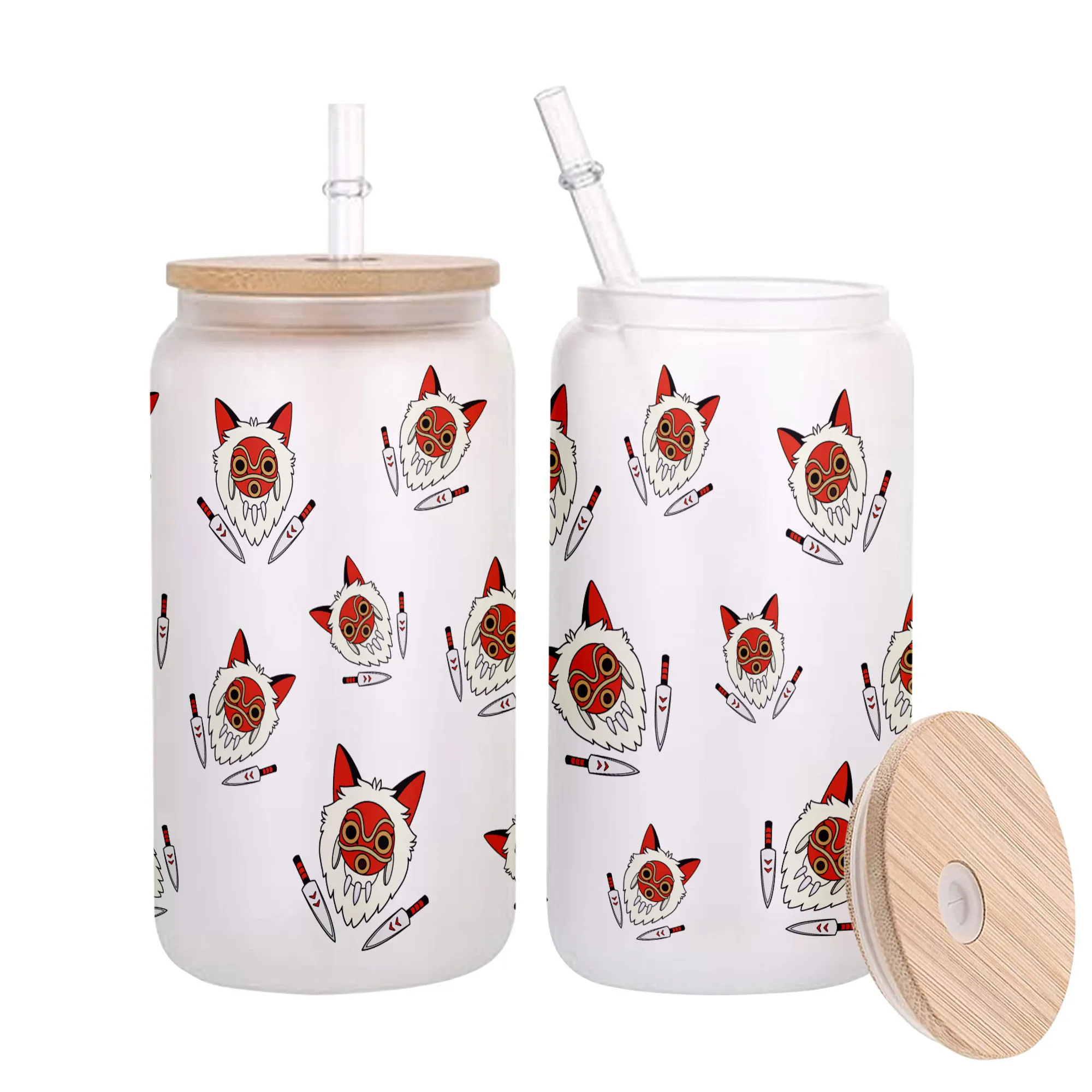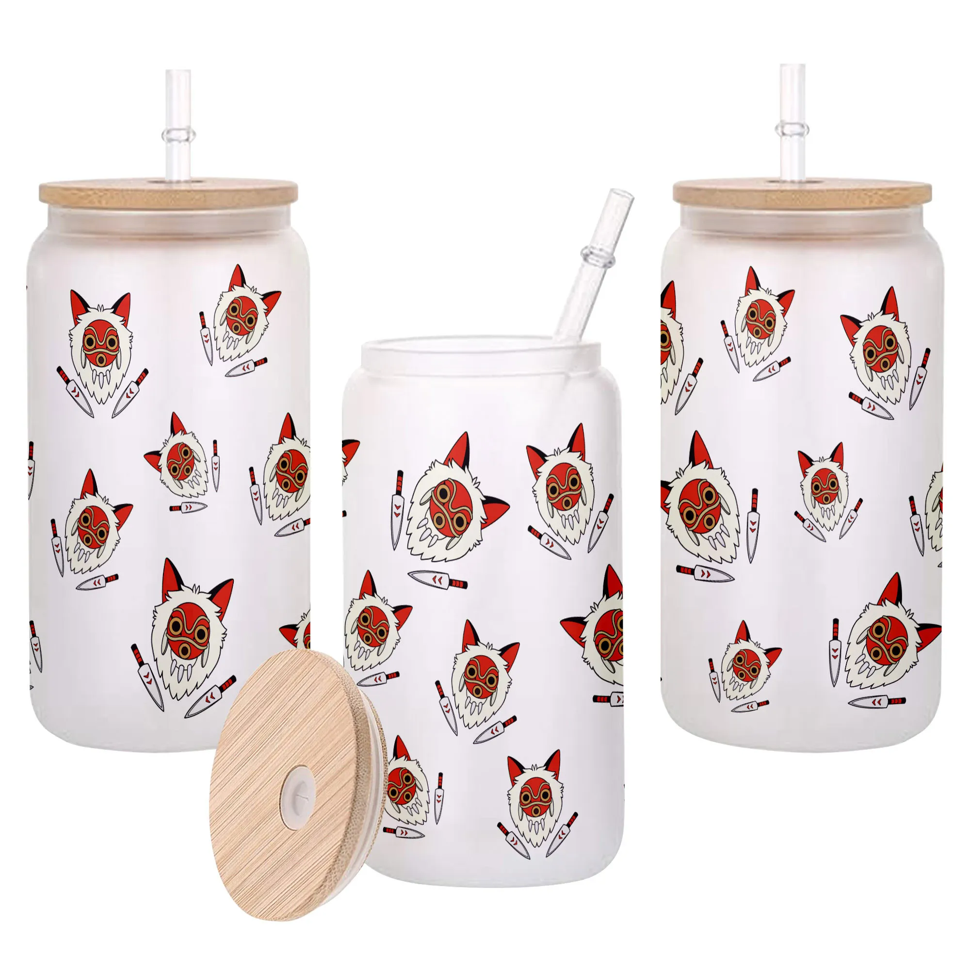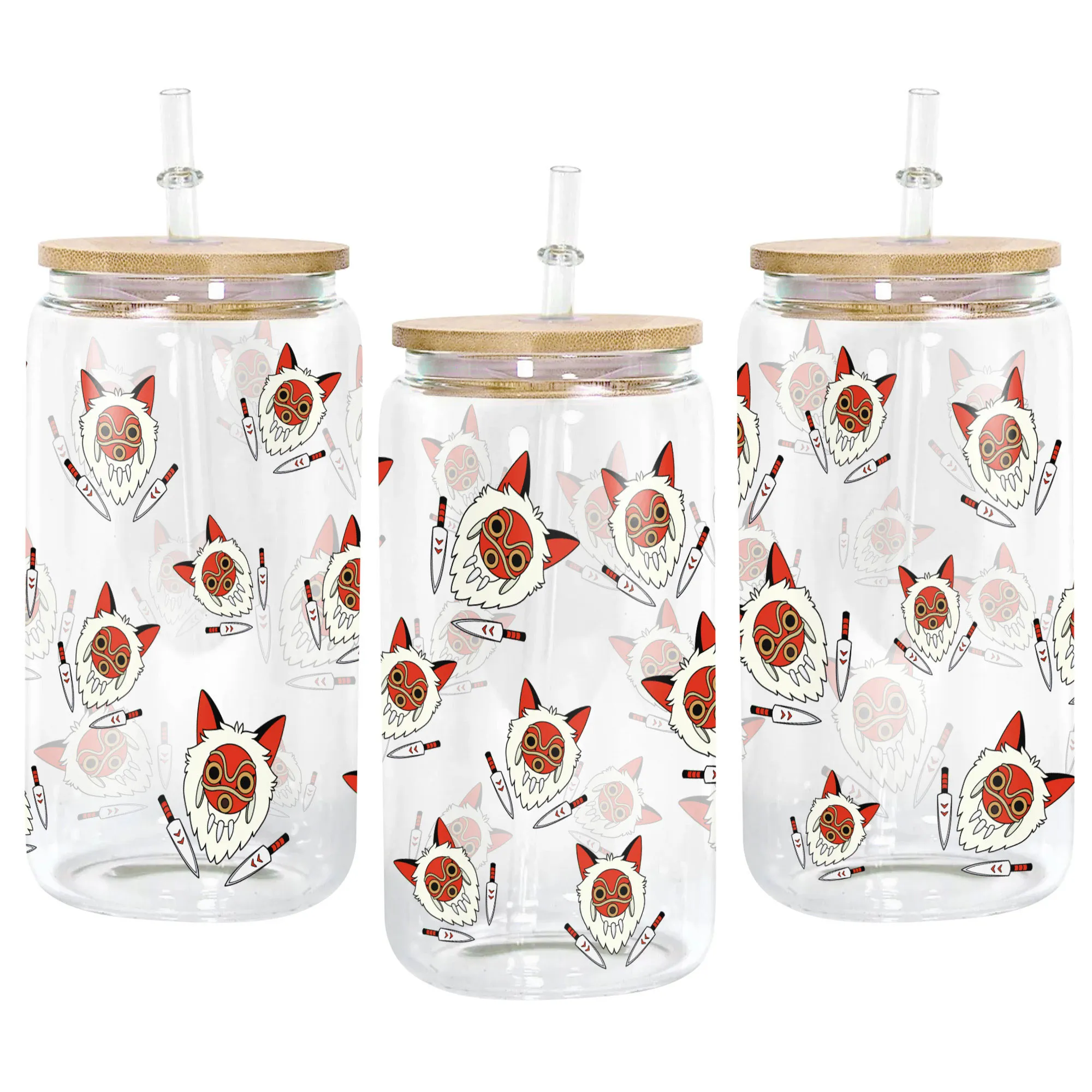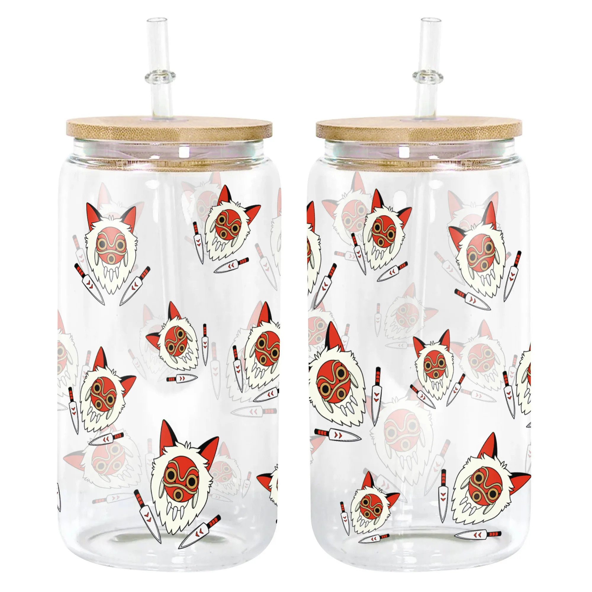 Princess Mononoke Mask Anime Glass Can 16oz Custom Water Bottle
