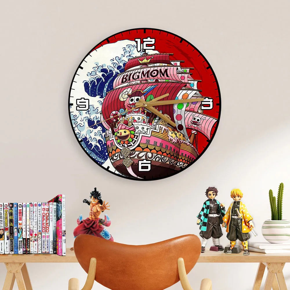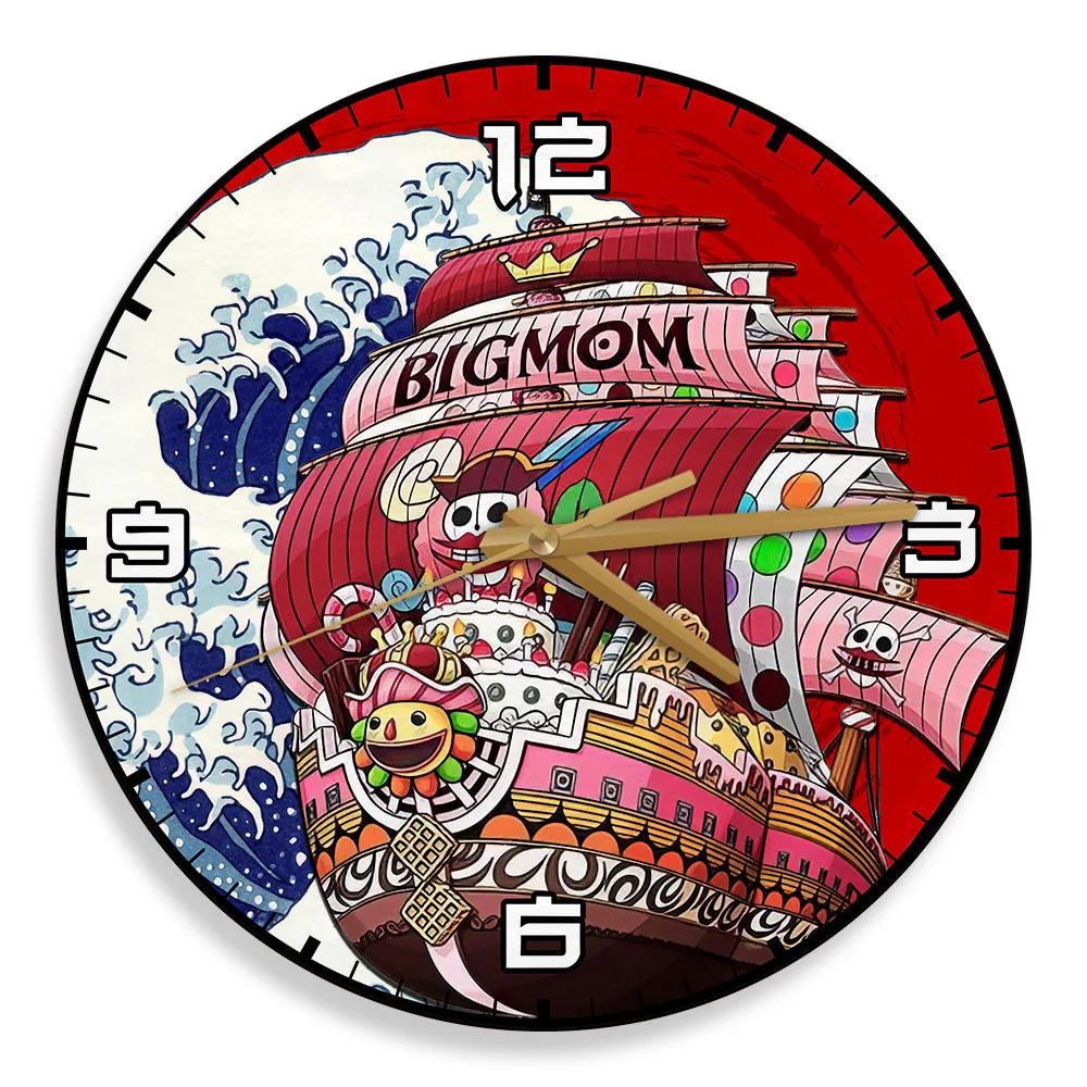 Queen Mama Chanter Ship Kanagawa Wave Red Sun Anime Wooden Wall Clock