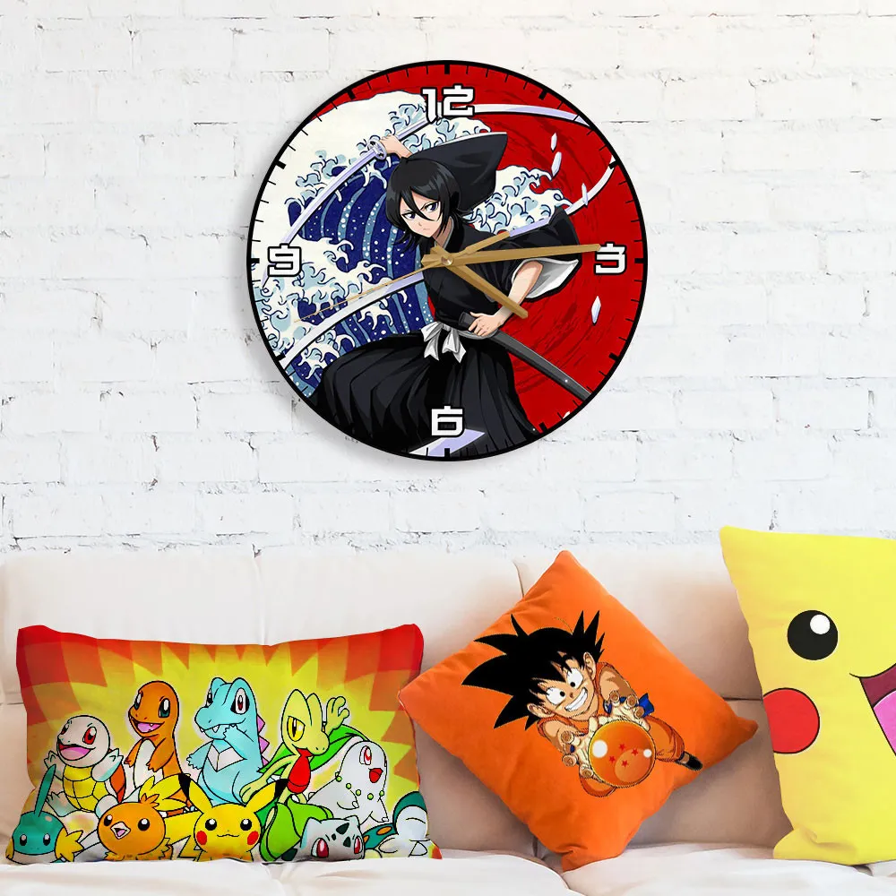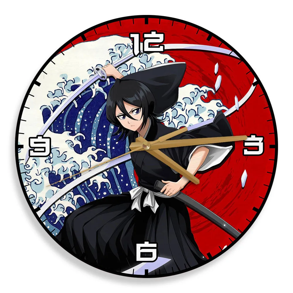 Rukia Kuchiki Wooden Wall Clock Kanagawa Wave Red Sun Anime-Wexanime