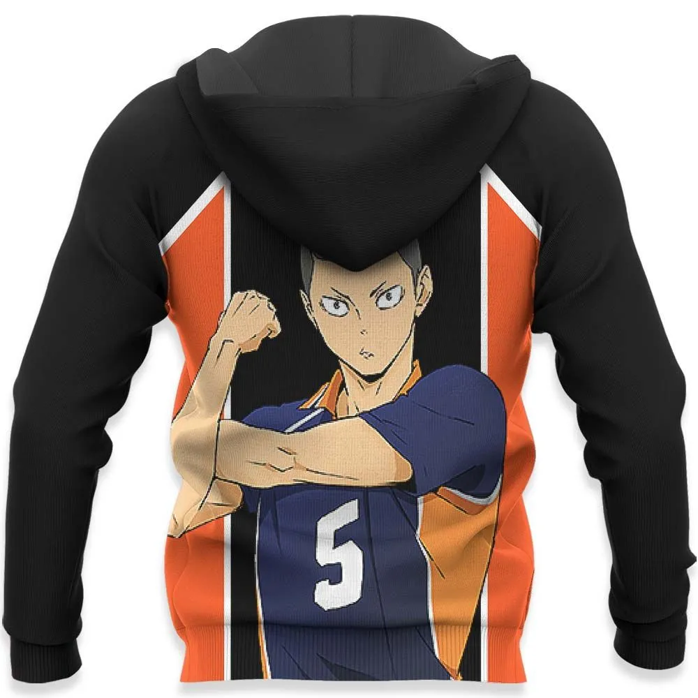 Ryunosuke Tanaka Karasuno Zip Hoodies Haikyuu Anime Costume