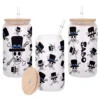 All of our Glass Can 16oz are custom-made-to-order and handcraftedwith high-quality glass material and accompanied by a convenient hard plastic straw and a wooden lid with a convenient hold for straw.