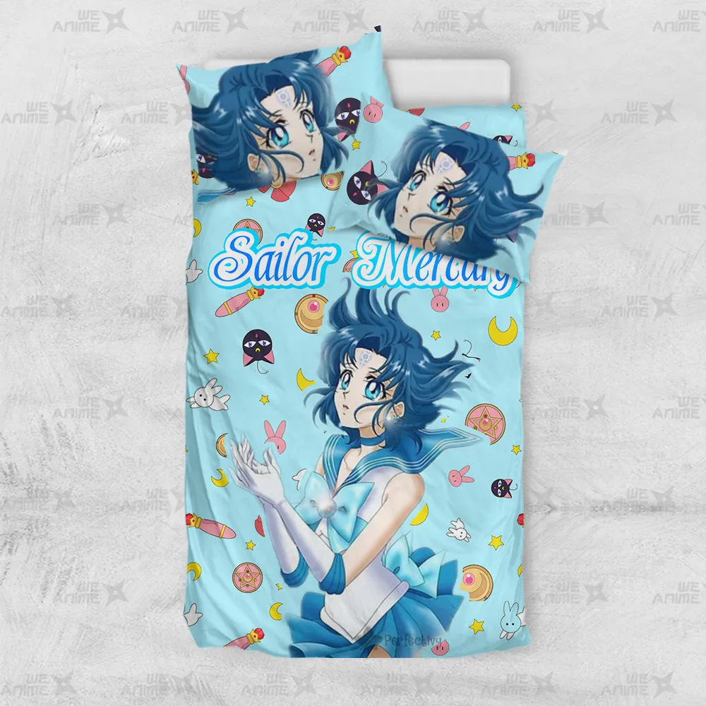 Sailor Mercury Cute Version Bedding Set Custom Sailor Moon Anime Bedroom