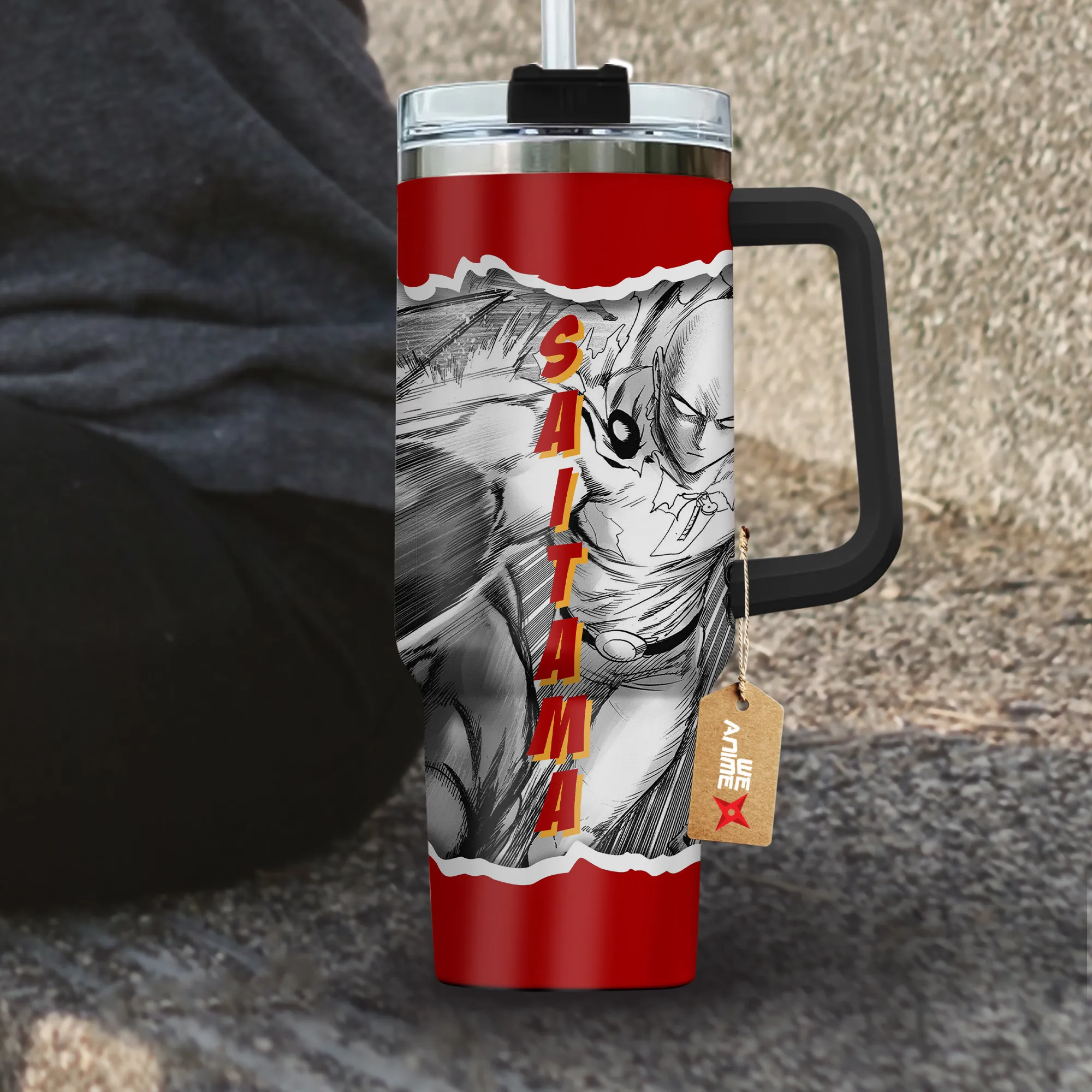 Saitama 40oz Travel Tumbler With Handle Custom Anime Cup
