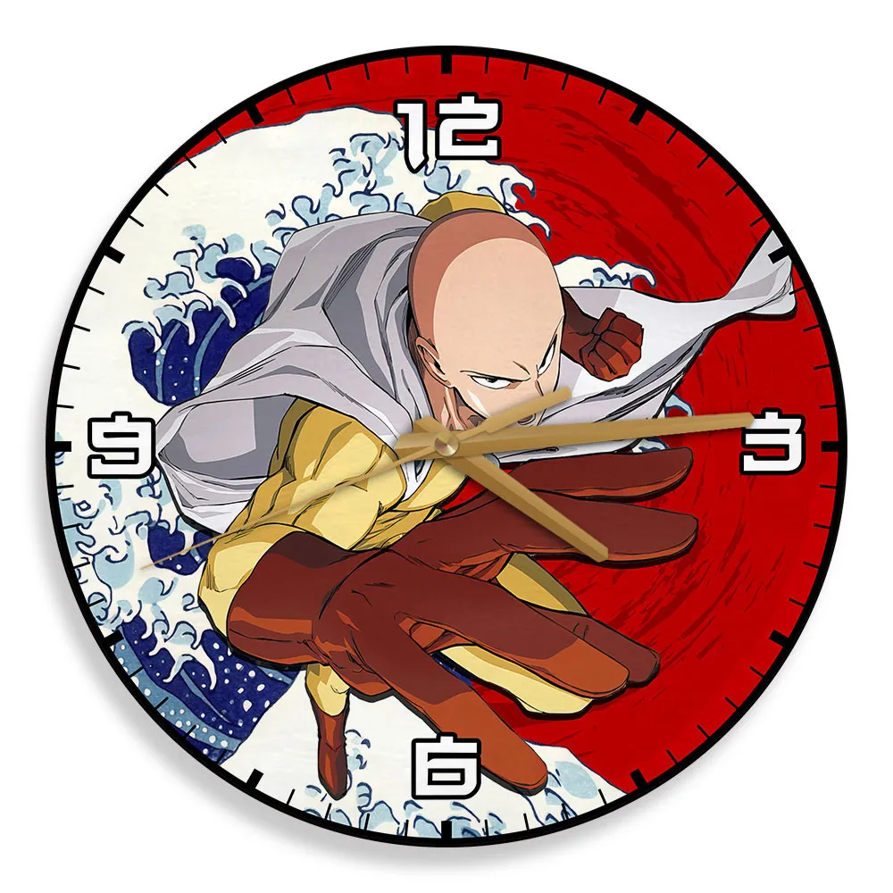 Saitama Wooden Wall Clock Kanagawa Wave Red Sun Anime