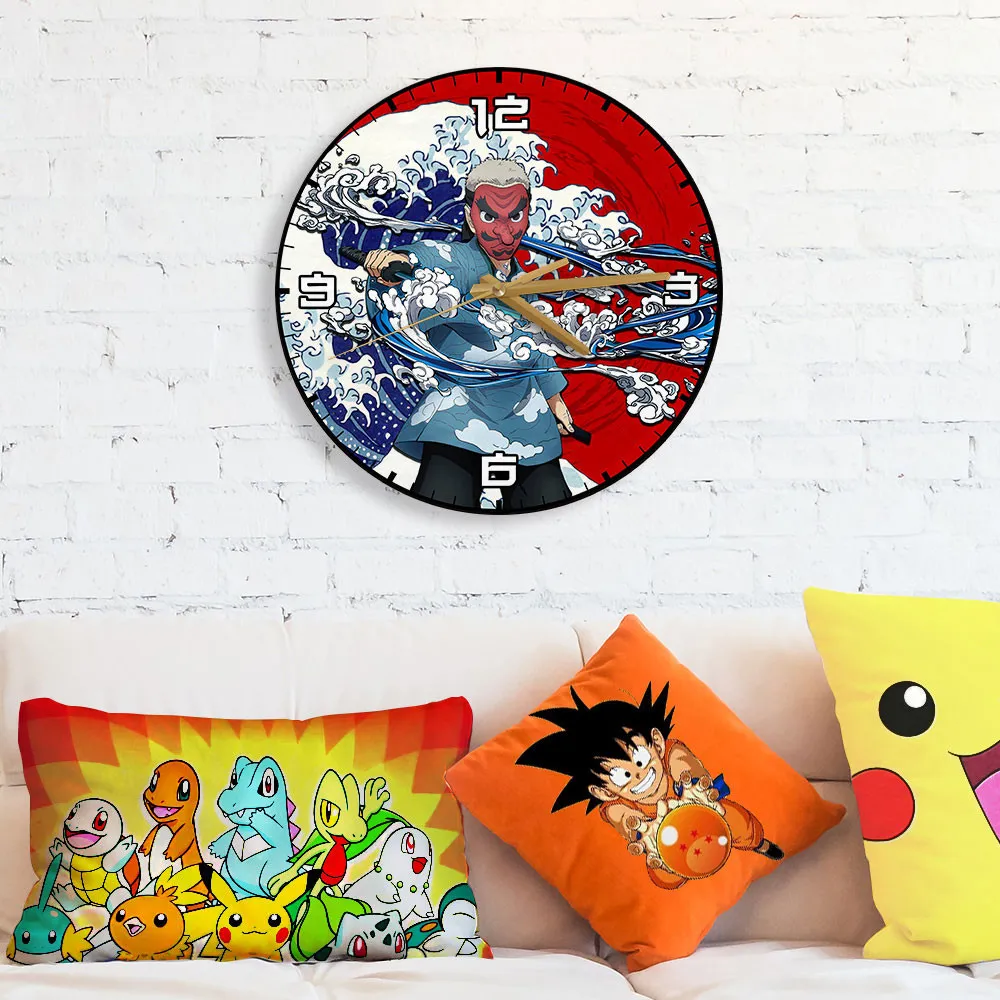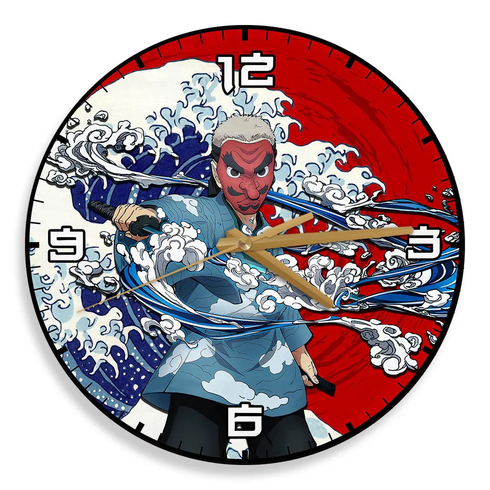 Sakonji Urokodaki Kanagawa Wave Red Sun Wooden Clock Anime Wall Clock