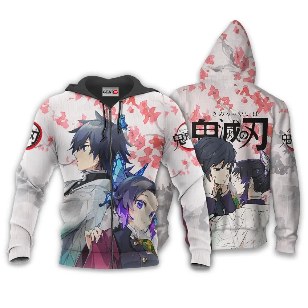 Shinobu and Giyuu Zip Hoodie Custom Anime Valentine’s Gifts