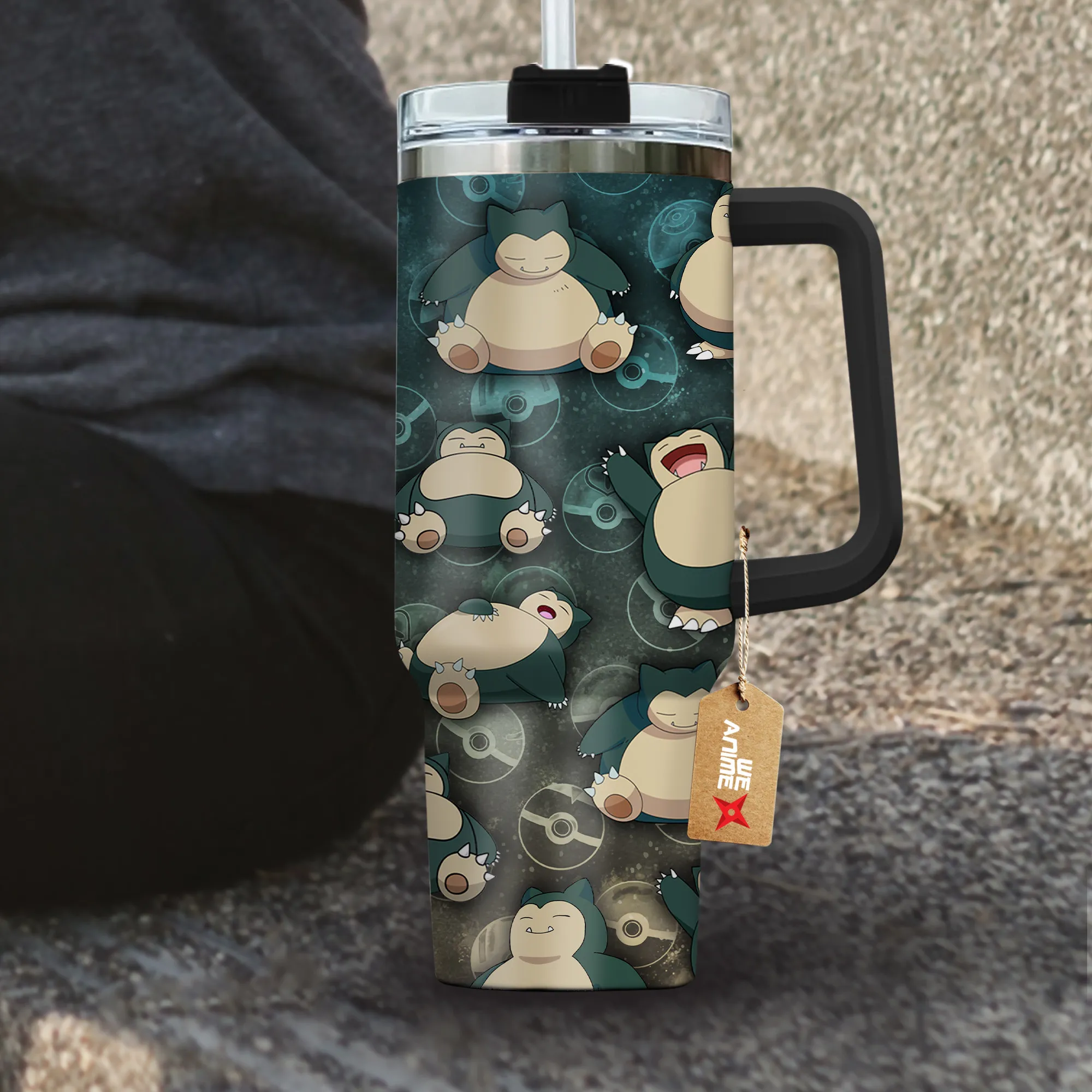 Snorlax 40oz Travel Tumbler With Handle Custom Anime Accessories
