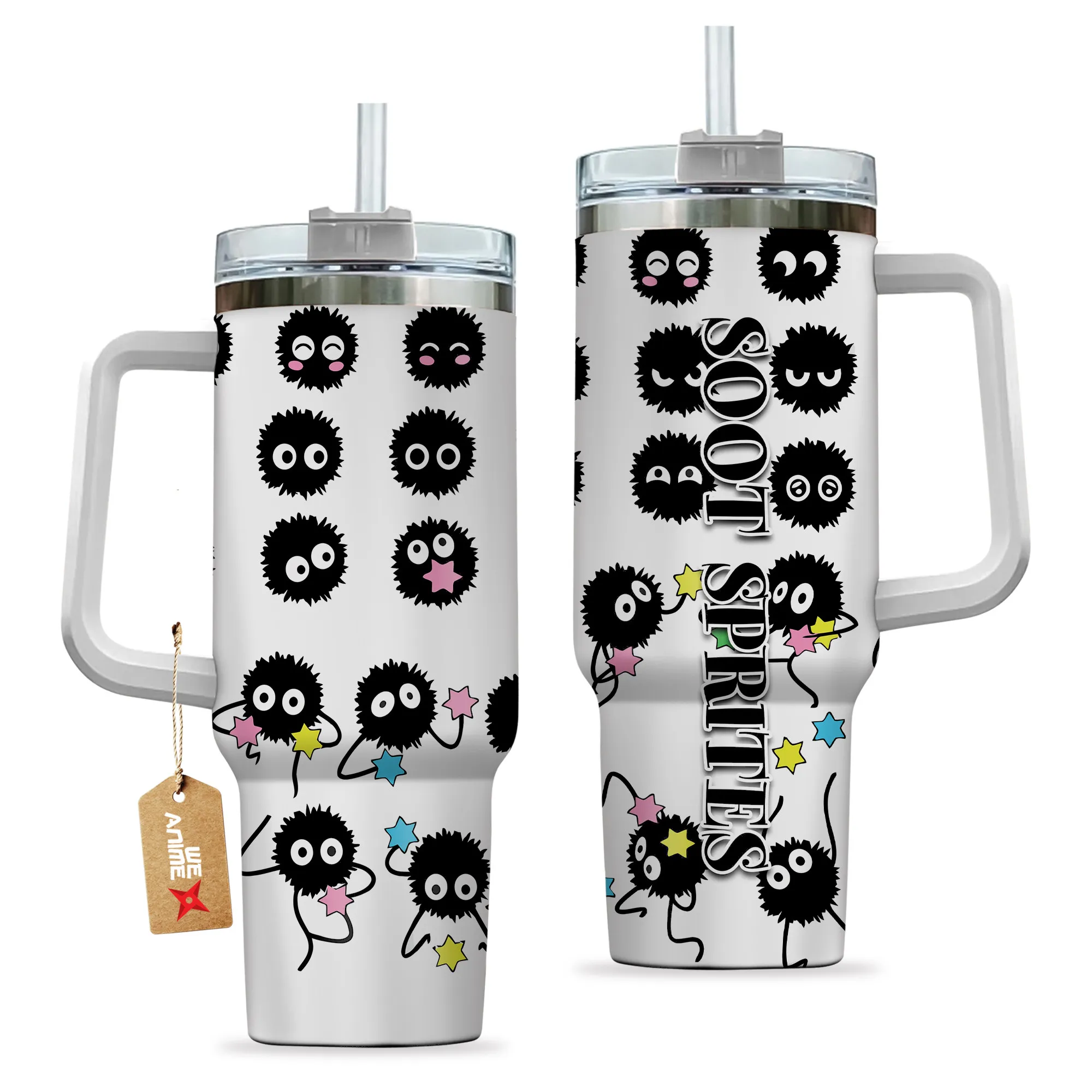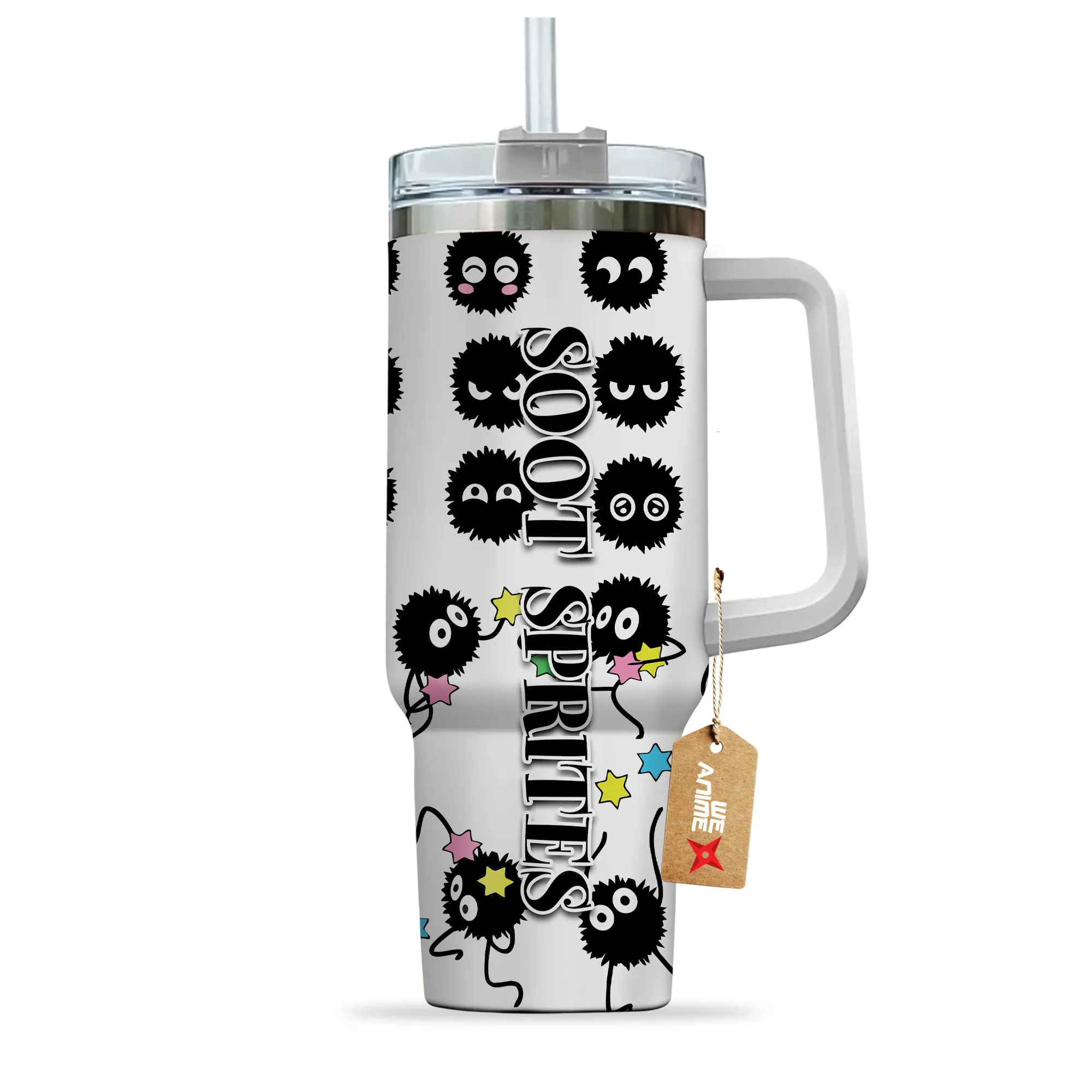 Soot Sprites 40oz Tumbler Cup With Handle Custom Cute Pattern
