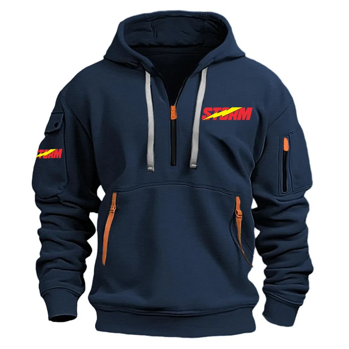 Elevate your wardrobe with our Storm hoodie half zipper, meticulously crafted for both function and fashion. Featuring long sleeves for added warmth and coverage, this hoodie keeps you comfortable in cooler conditions. The hooded neckline adds a modern, trendy touch to the ensemble, making it a perfect choice for those who appreciate a contemporary look.