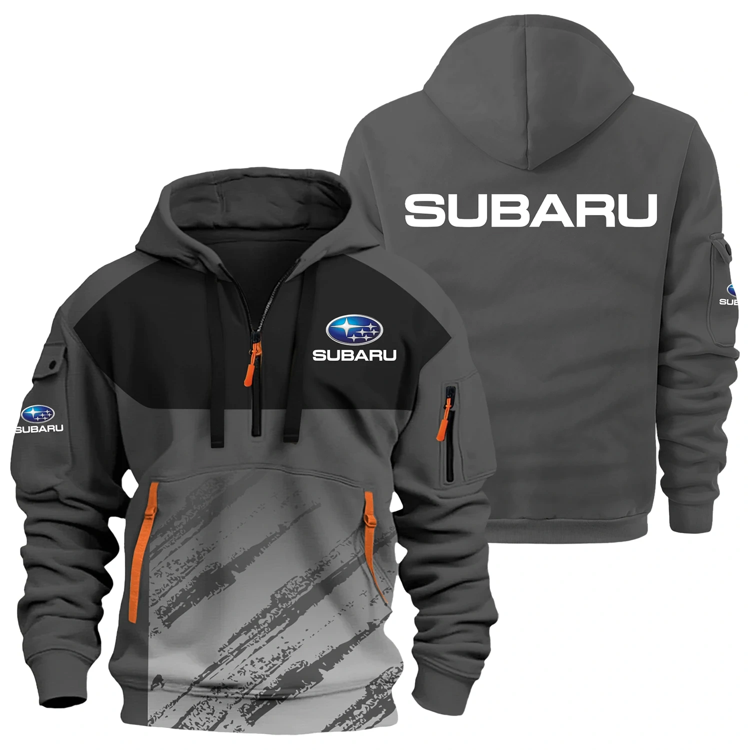 Elevate your wardrobe with our Subaru hoodie half zipper half zipper, meticulously crafted for both function and fashion. Featuring long sleeves for added warmth and coverage, this hoodie keeps you comfortable in cooler conditions. The hooded neckline adds a modern, trendy touch to the ensemble, making it a perfect choice for those who appreciate a contemporary look.