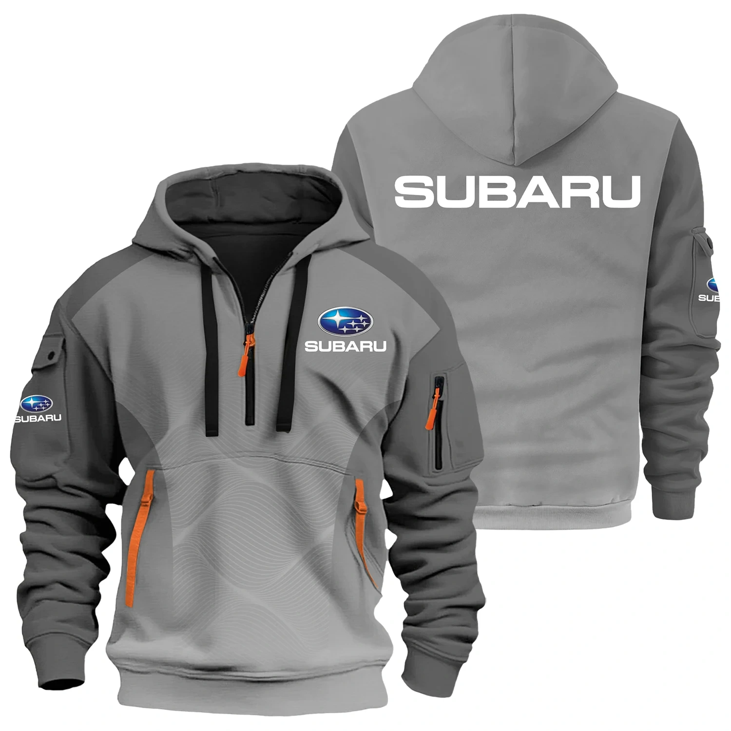 Elevate your wardrobe with our Subaru hoodie half zipper, meticulously crafted for both function and fashion. Featuring long sleeves for added warmth and coverage, this hoodie keeps you comfortable in cooler conditions. The hooded neckline adds a modern, trendy touch to the ensemble, making it a perfect choice for those who appreciate a contemporary look.