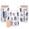 All of our Glass Can 16oz are custom-made-to-order and handcraftedwith high-quality glass material and accompanied by a convenient hard plastic straw and a wooden lid with a convenient hold for straw.