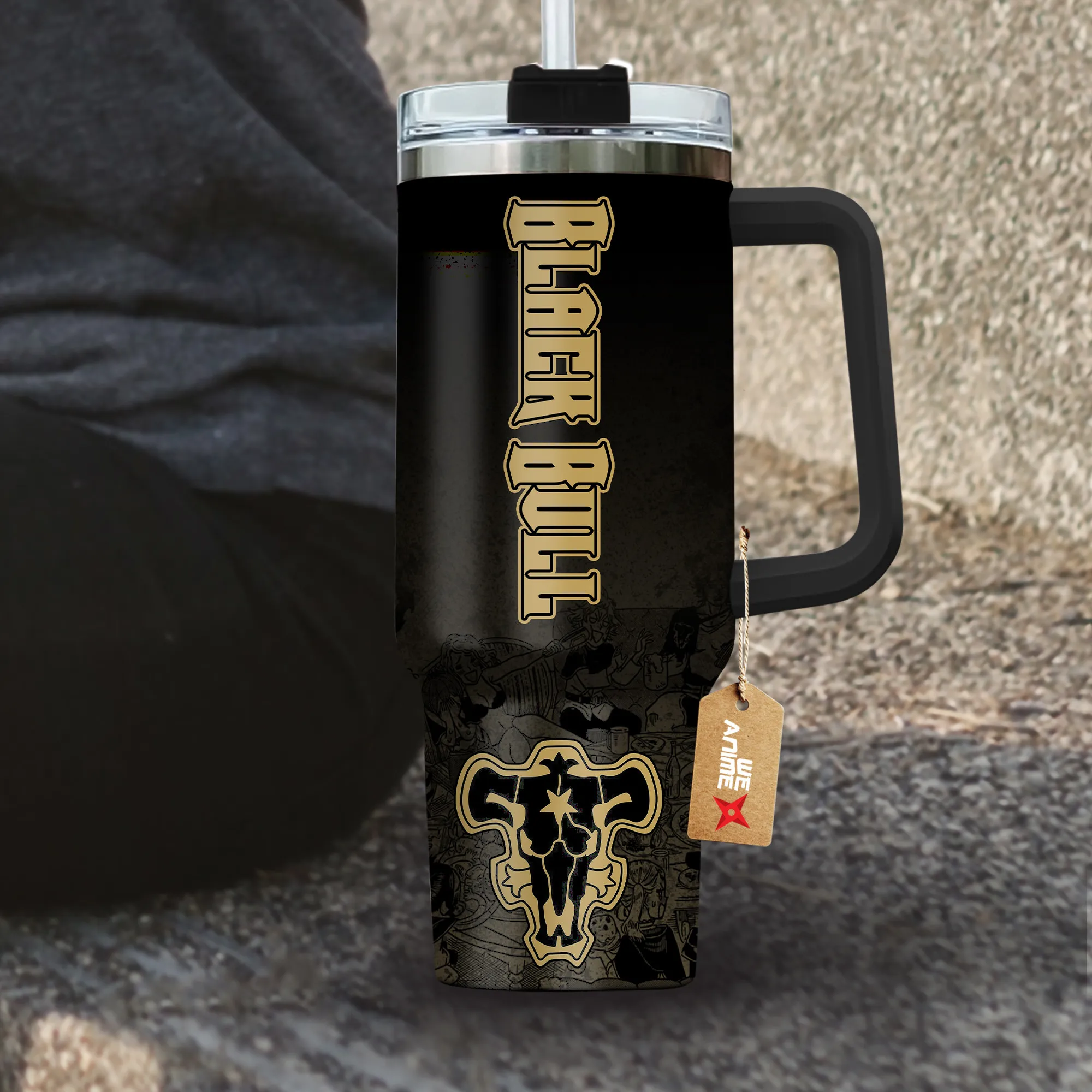 Symbols Black Bull 40oz Travel Tumbler Personalized With Handle Custom Anime Cup