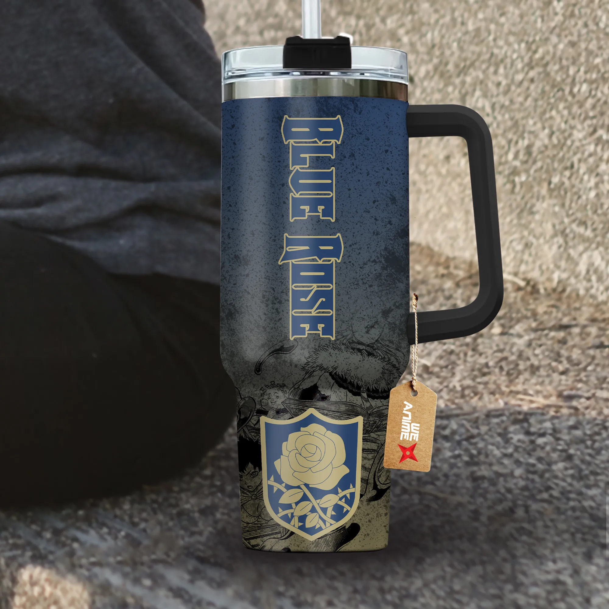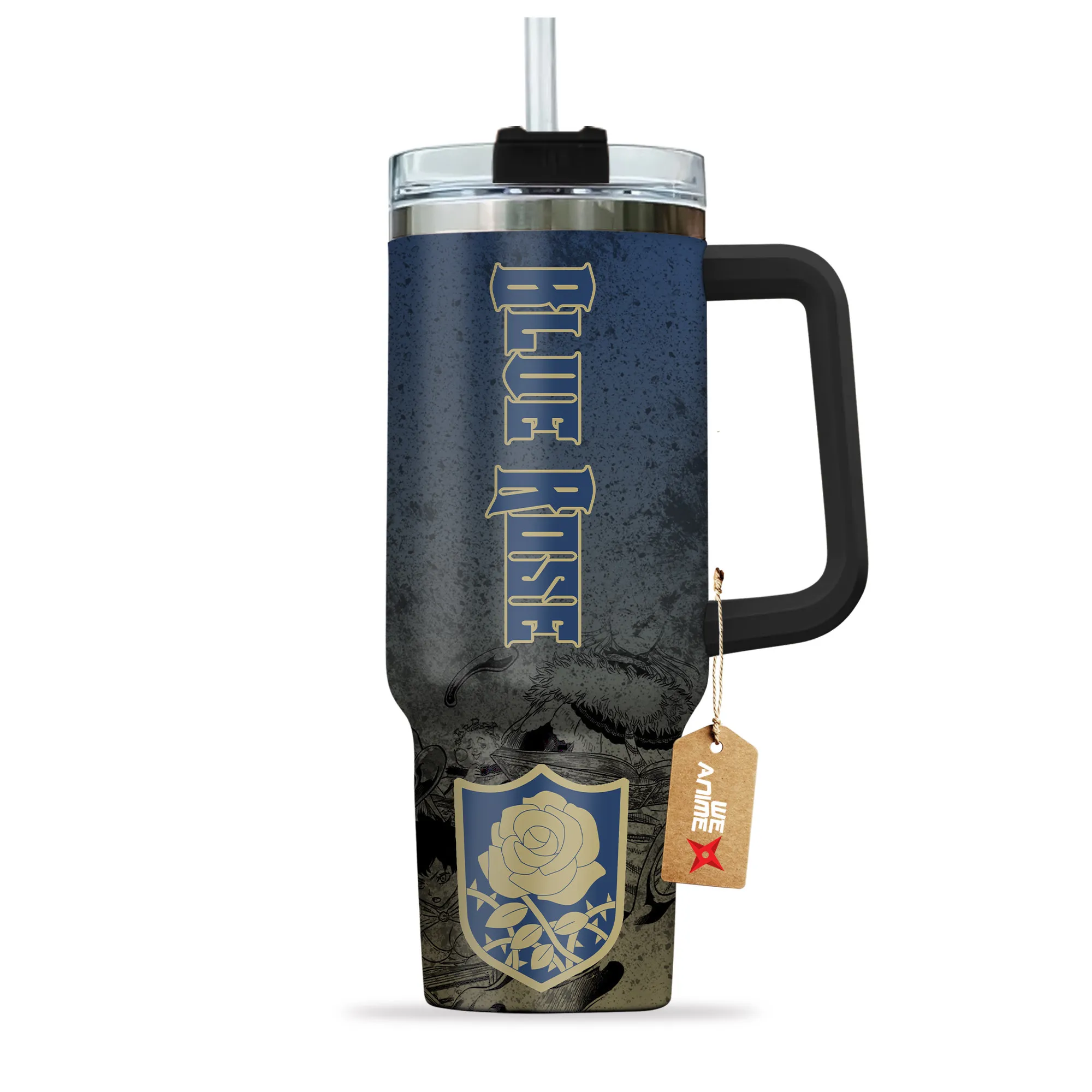 Symbols Blue Rose 40oz Travel Tumbler Personalized With Handle Custom Anime Cup
