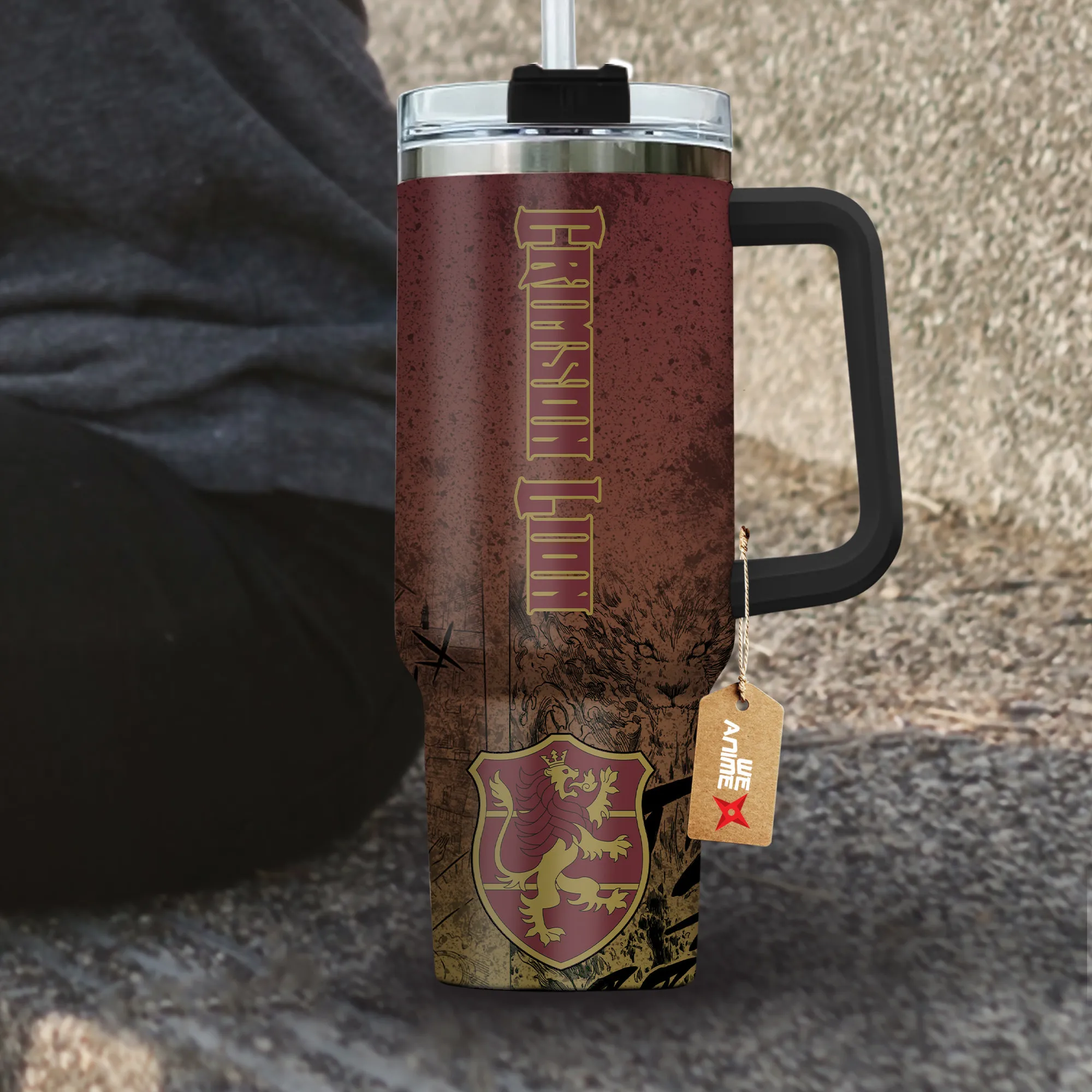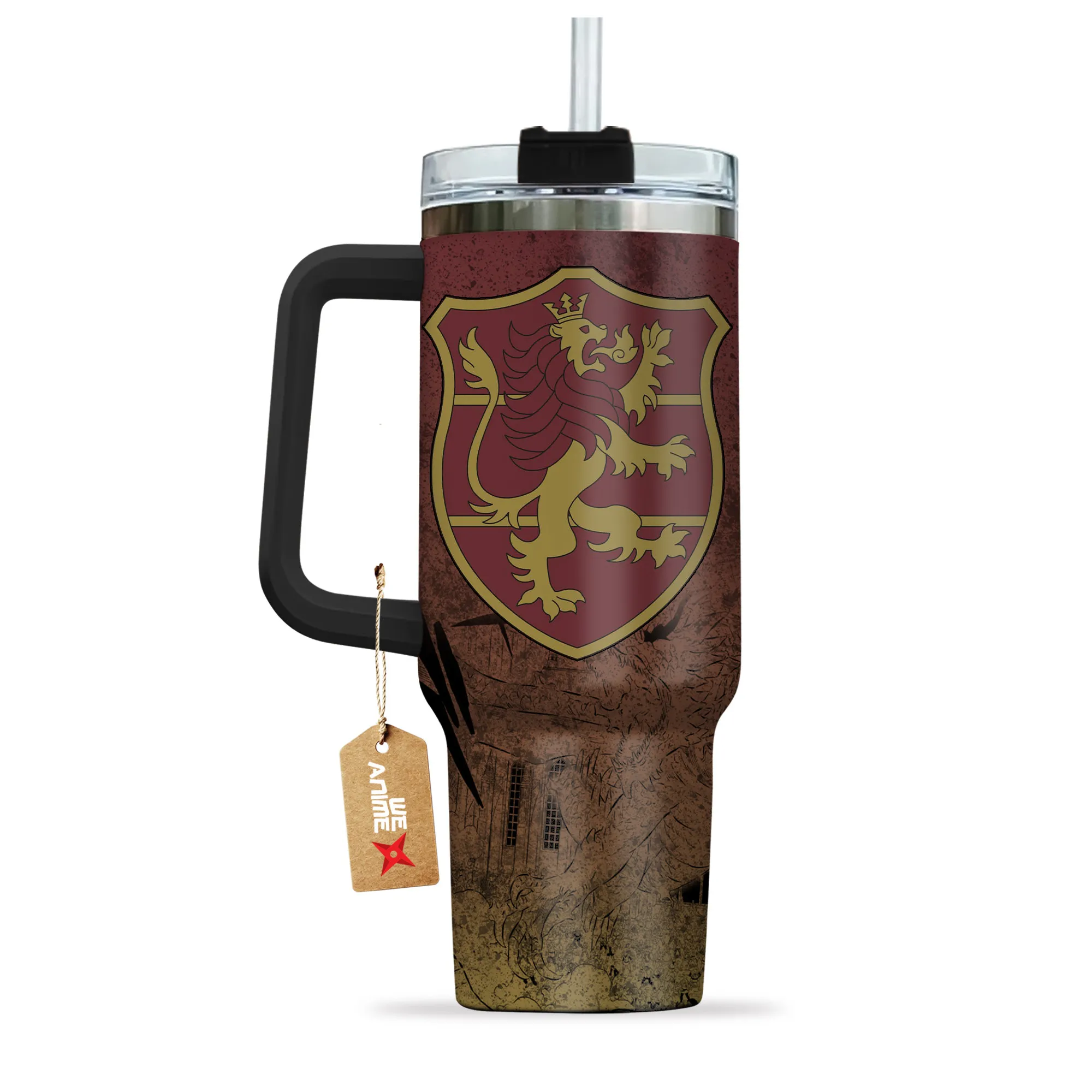 Symbols Crimson Lion 40oz Travel Tumbler Personalized With Handle Custom Anime Cup