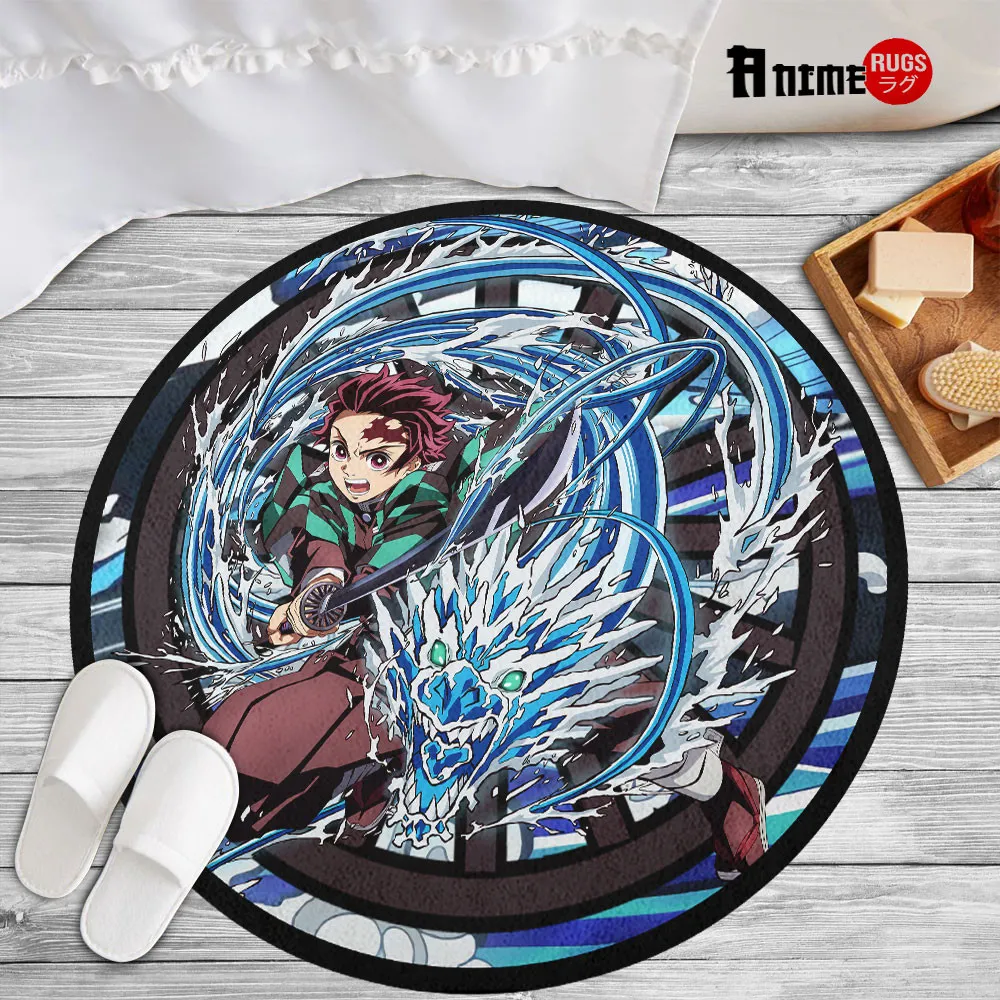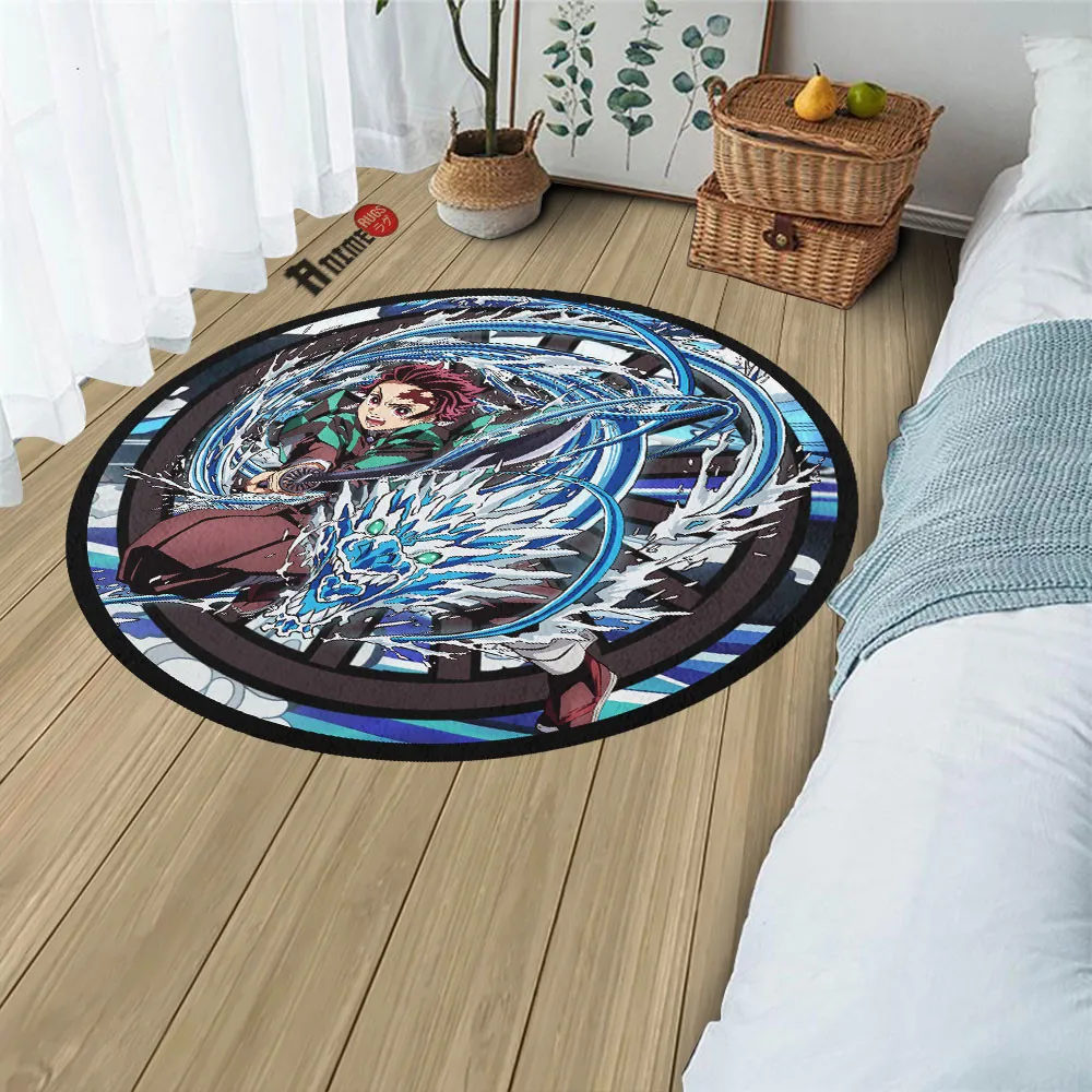 Demon Slayer Tanjiro Kamado Water Breathing Round Rug Custom Anime Circle Carpet