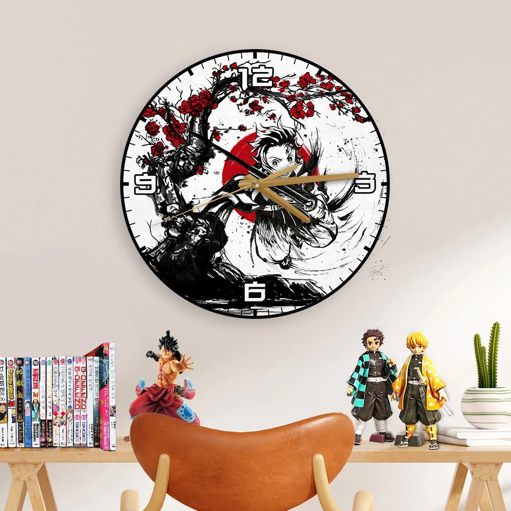 Tanjiro Wooden Wall Clock Anime Custom Japan Cherry Blossom-Wexanime