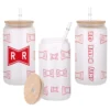All of our Glass Can 16oz are custom-made-to-order and handcraftedwith high-quality glass material and accompanied by a convenient hard plastic straw and a wooden lid with a convenient hold for straw.