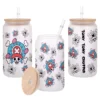 All of our Glass Can 16oz are custom-made-to-order and handcraftedwith high-quality glass material and accompanied by a convenient hard plastic straw and a wooden lid with a convenient hold for straw.