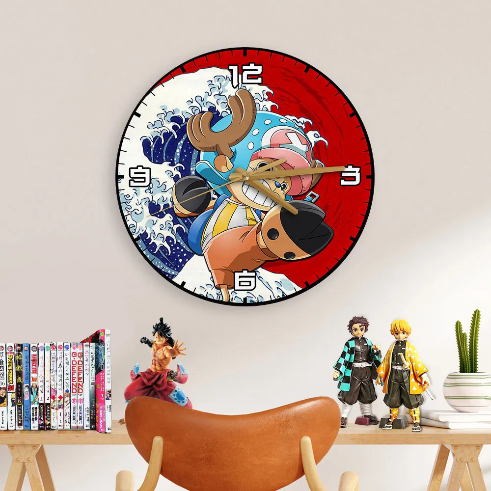 Tony Tony Chopper Kanagawa Wave Red Sun Anime Wooden Wall Clock
