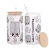 All of our Glass Can 16oz are custom-made-to-order and handcraftedwith high-quality glass material and accompanied by a convenient hard plastic straw and a wooden lid with a convenient hold for straw.