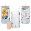 All of our Glass Can 16oz are custom-made-to-order and handcraftedwith high-quality glass material and accompanied by a convenient hard plastic straw and a wooden lid with a convenient hold for straw.