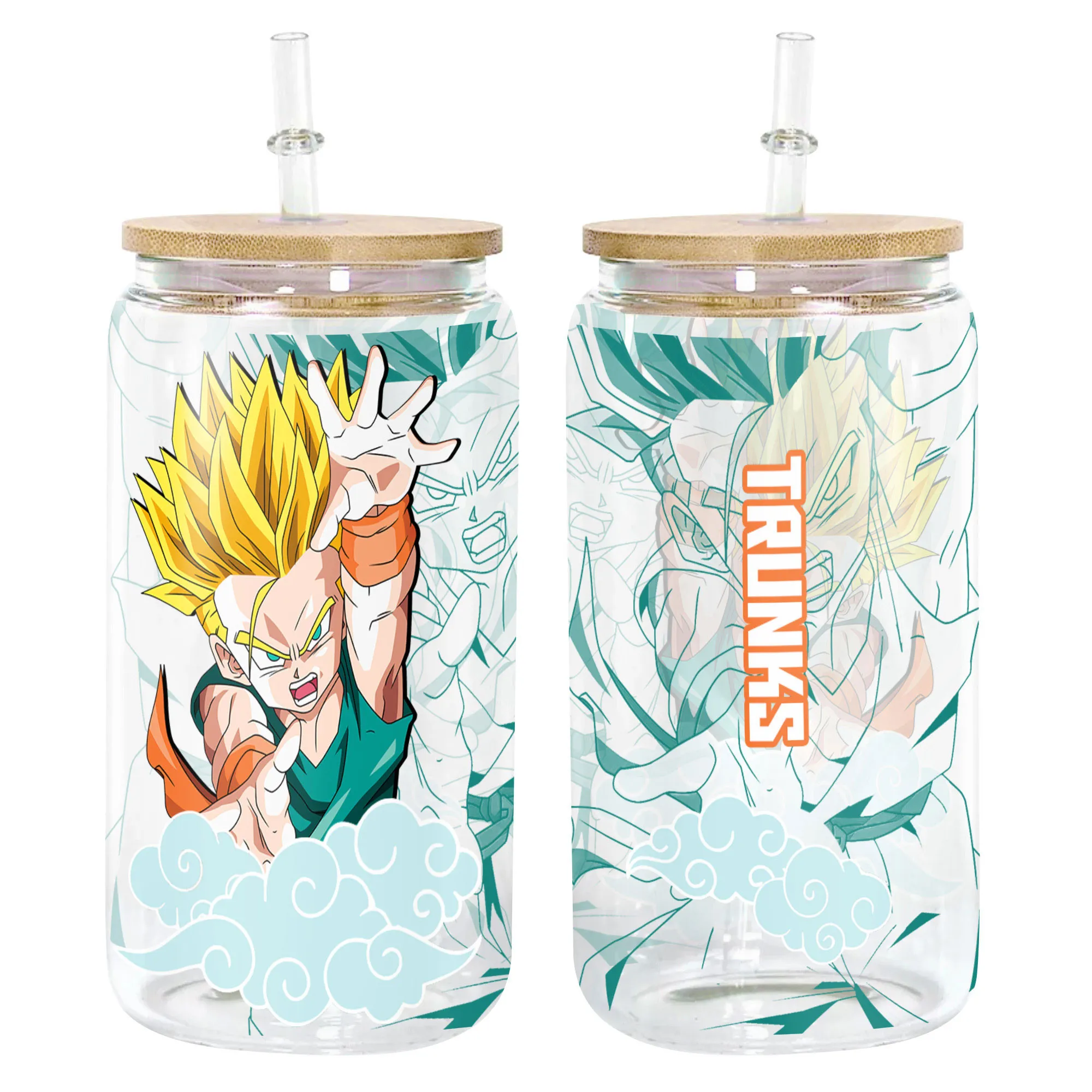 Trunks Kid Super Saiyan Anime Glass Can 16oz Custom Personalized Water Bottle