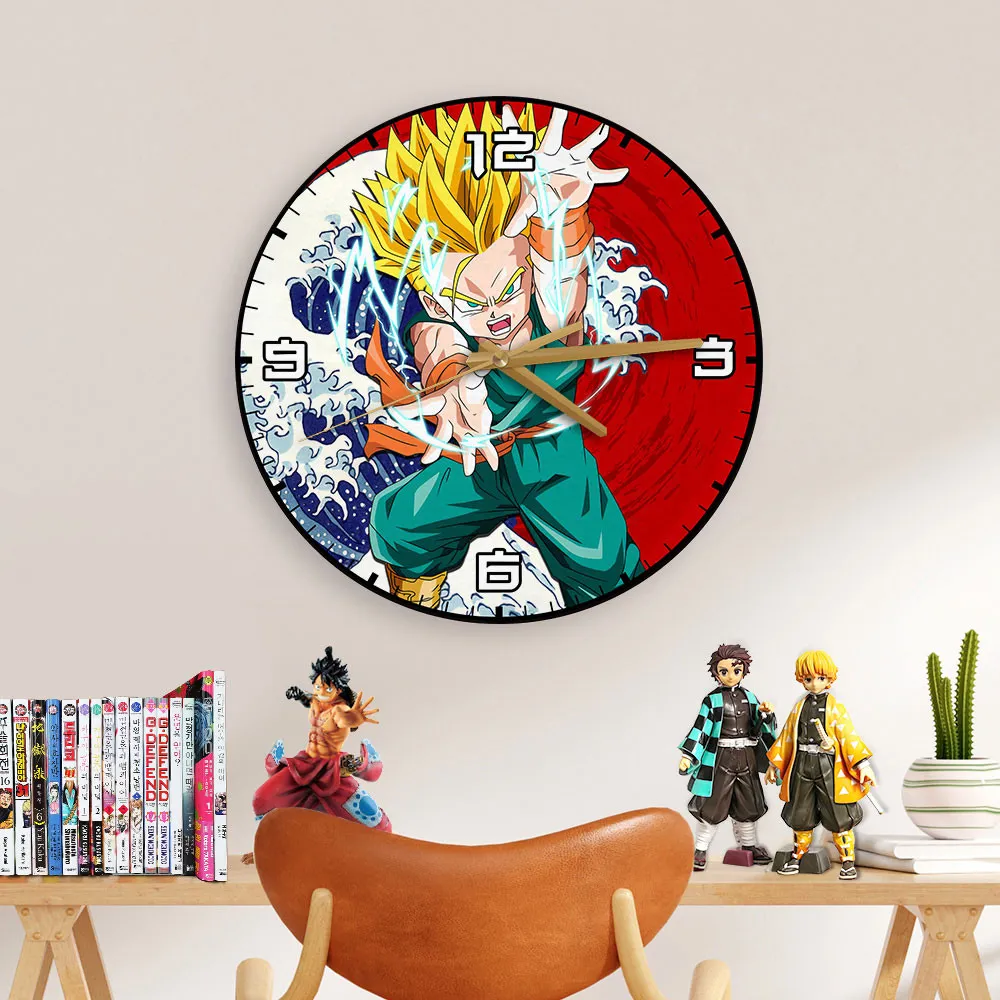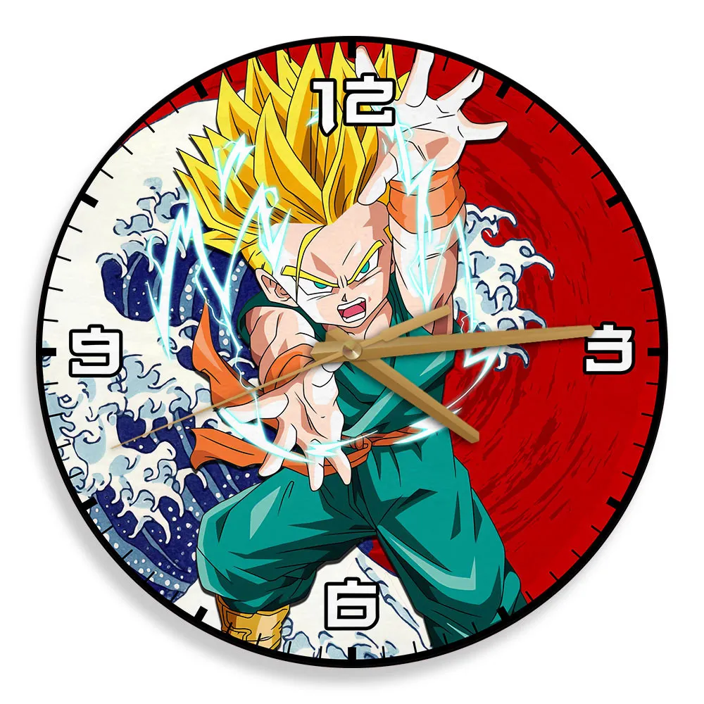 Trunks Kid Super Saiyan Kanagawa Wave Red Sun Anime Wooden Wall Clock