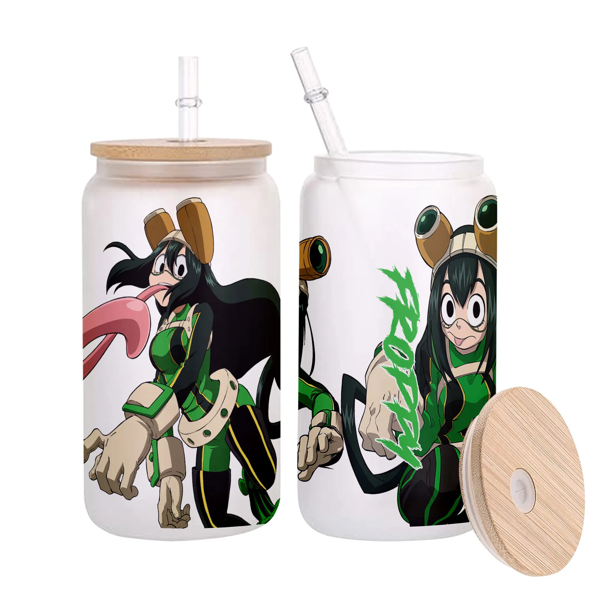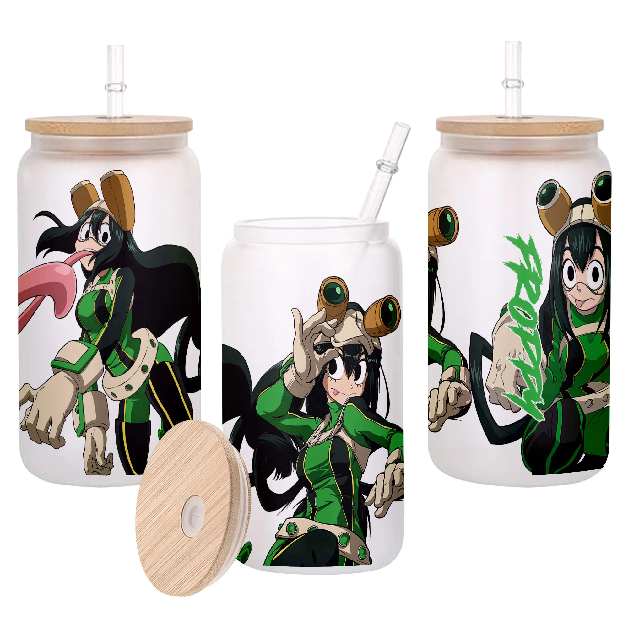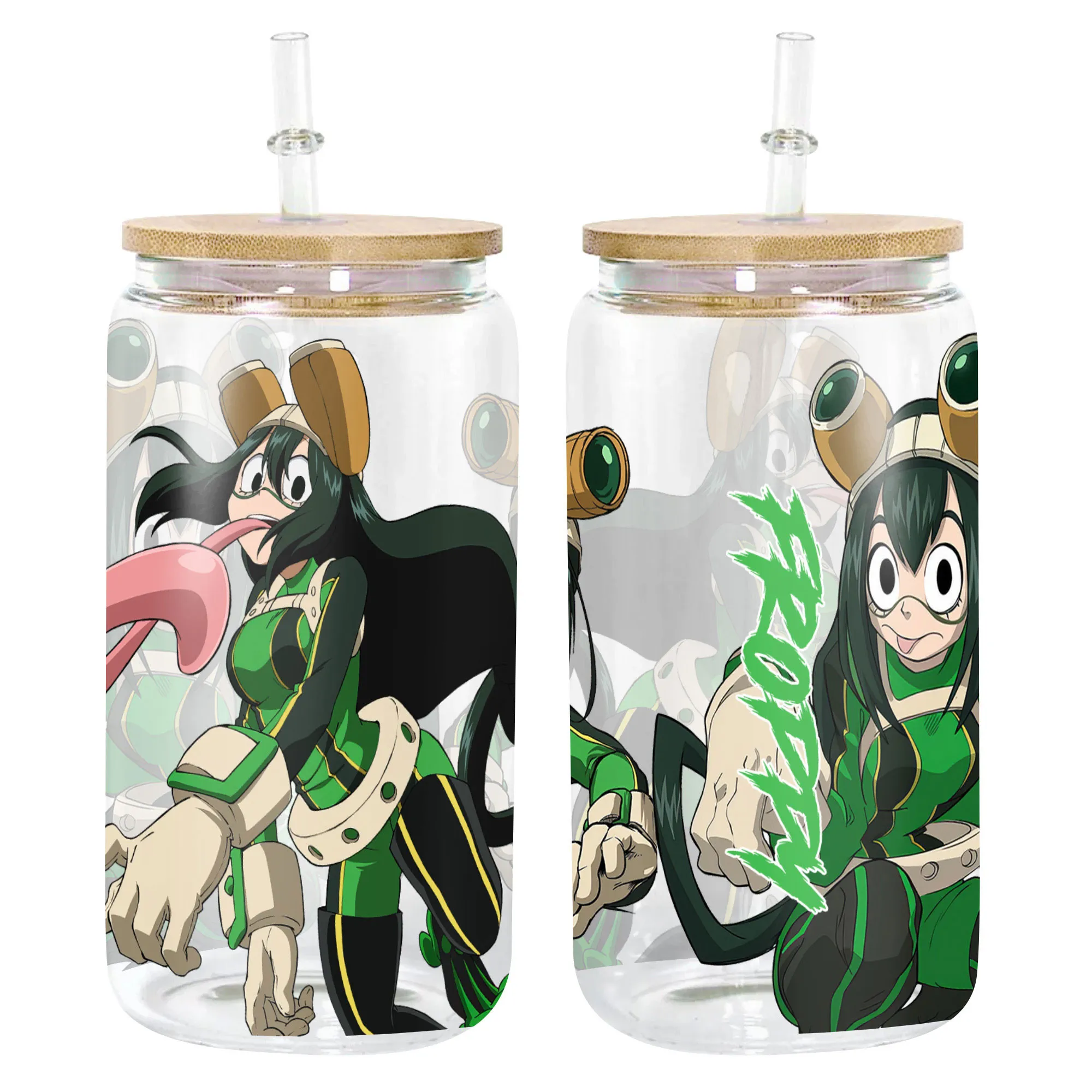 Tsuyu Asui (Froppy) Anime Glass Can 16oz Custom Personalized Water Bottle