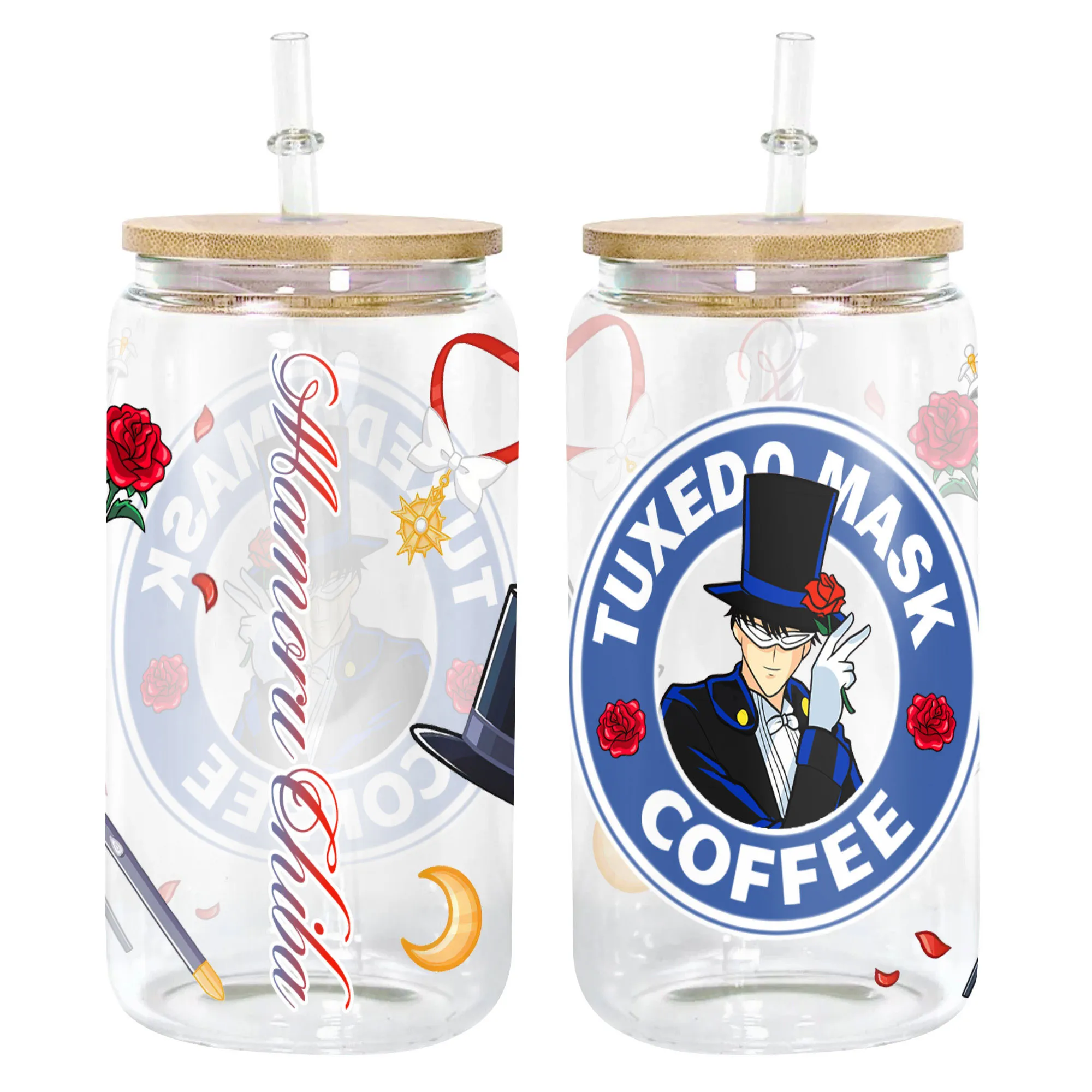 Tuxedo Mask Mamoru Chiba Anime Glass Can 16oz Custom Personalized Water Bottle