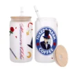 All of our Glass Can 16oz are custom-made-to-order and handcraftedwith high-quality glass material and accompanied by a convenient hard plastic straw and a wooden lid with a convenient hold for straw.