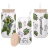 All of our Glass Can 16oz are custom-made-to-order and handcraftedwith high-quality glass material and accompanied by a convenient hard plastic straw and a wooden lid with a convenient hold for straw.