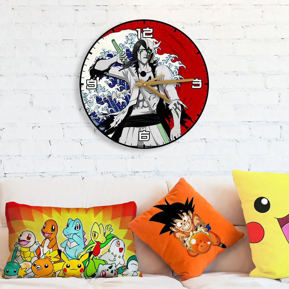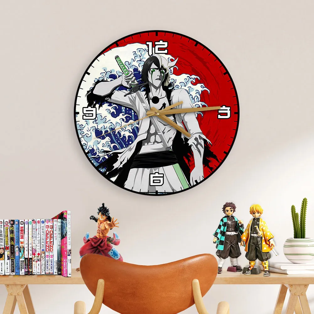 Ulquiorra Cifer Wooden Wall Clock Kanagawa Wave Red Sun Anime