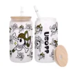 All of our Glass Can 16oz are custom-made-to-order and handcraftedwith high-quality glass material and accompanied by a convenient hard plastic straw and a wooden lid with a convenient hold for straw.