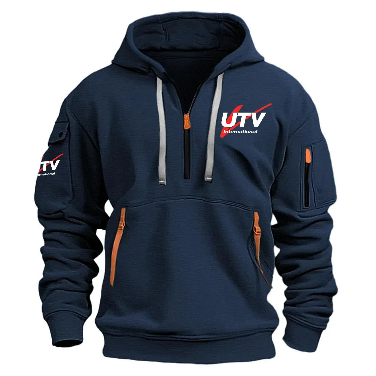Elevate your wardrobe with our UTV International hoodie half zipper, meticulously crafted for both function and fashion. Featuring long sleeves for added warmth and coverage, this hoodie keeps you comfortable in cooler conditions. The hooded neckline adds a modern, trendy touch to the ensemble, making it a perfect choice for those who appreciate a contemporary look.