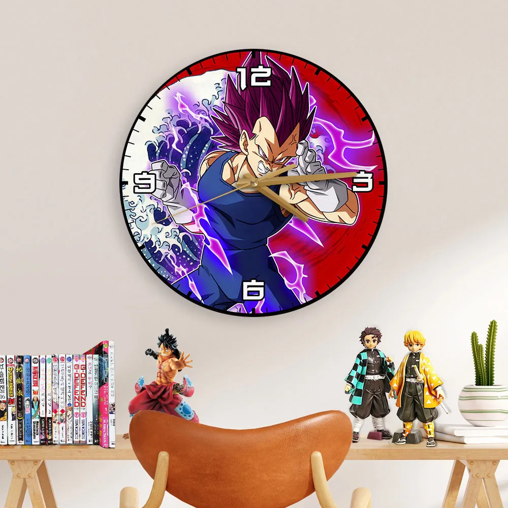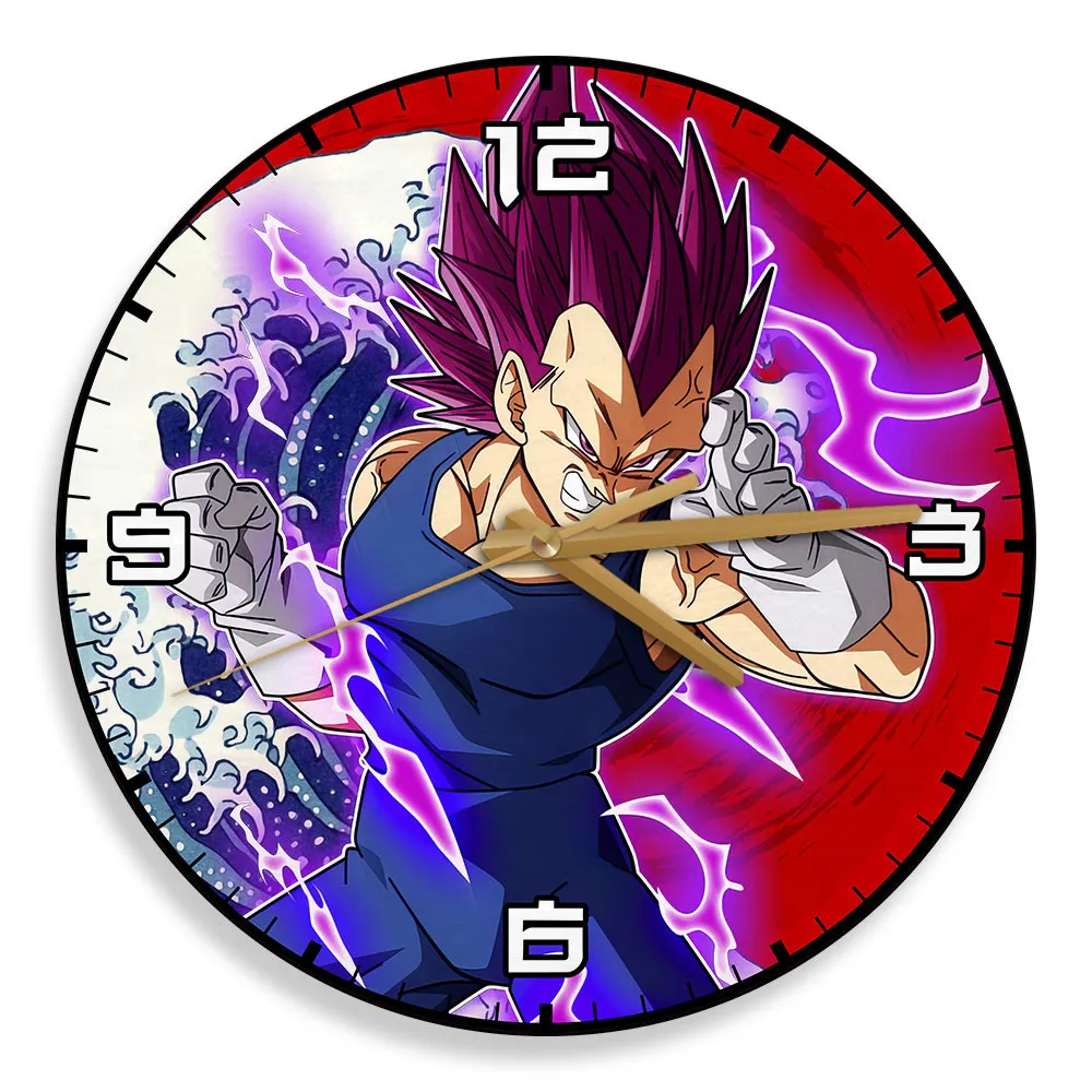 Vegeta Ultra Ego Kanagawa Wave Red Sun Anime Wooden Wall Clock