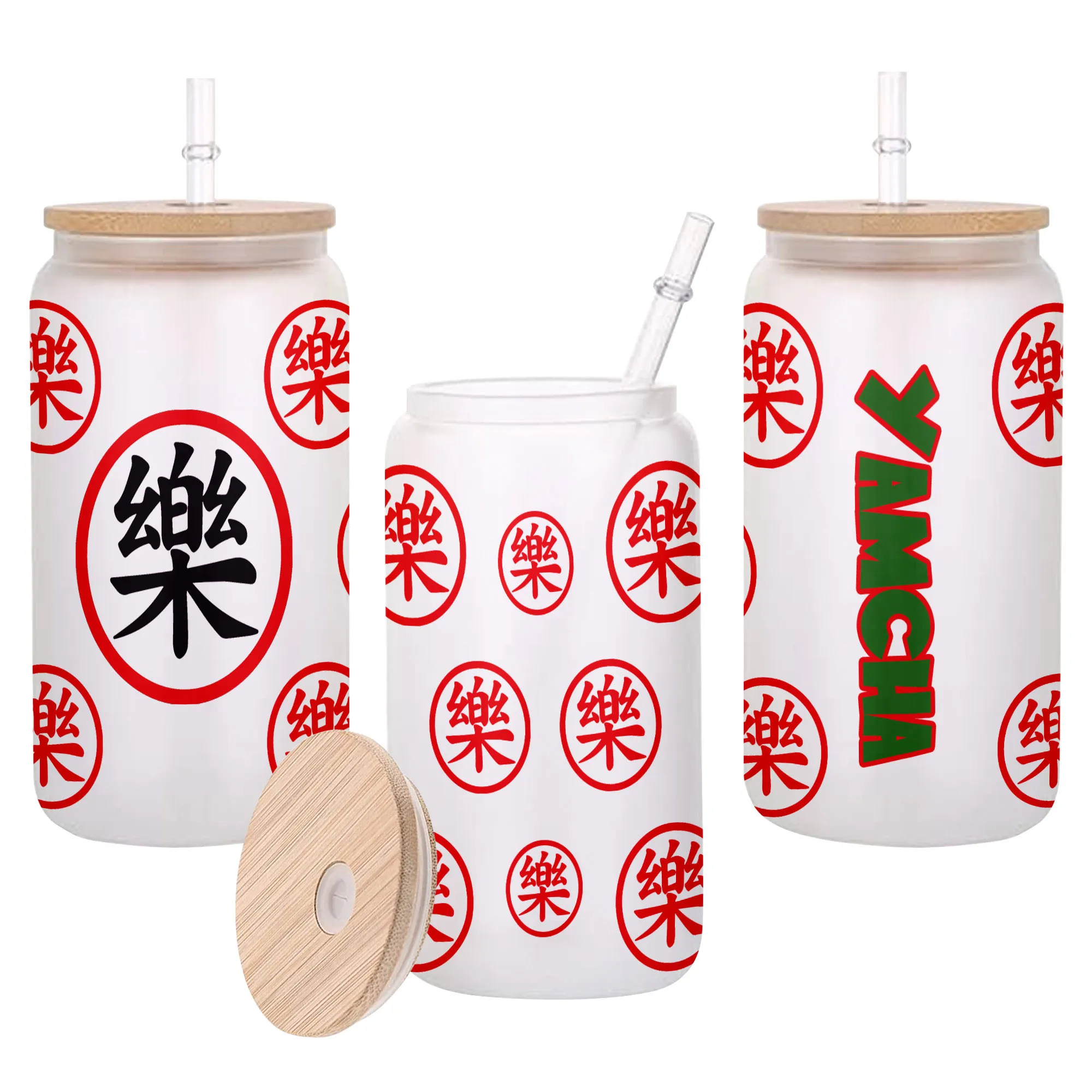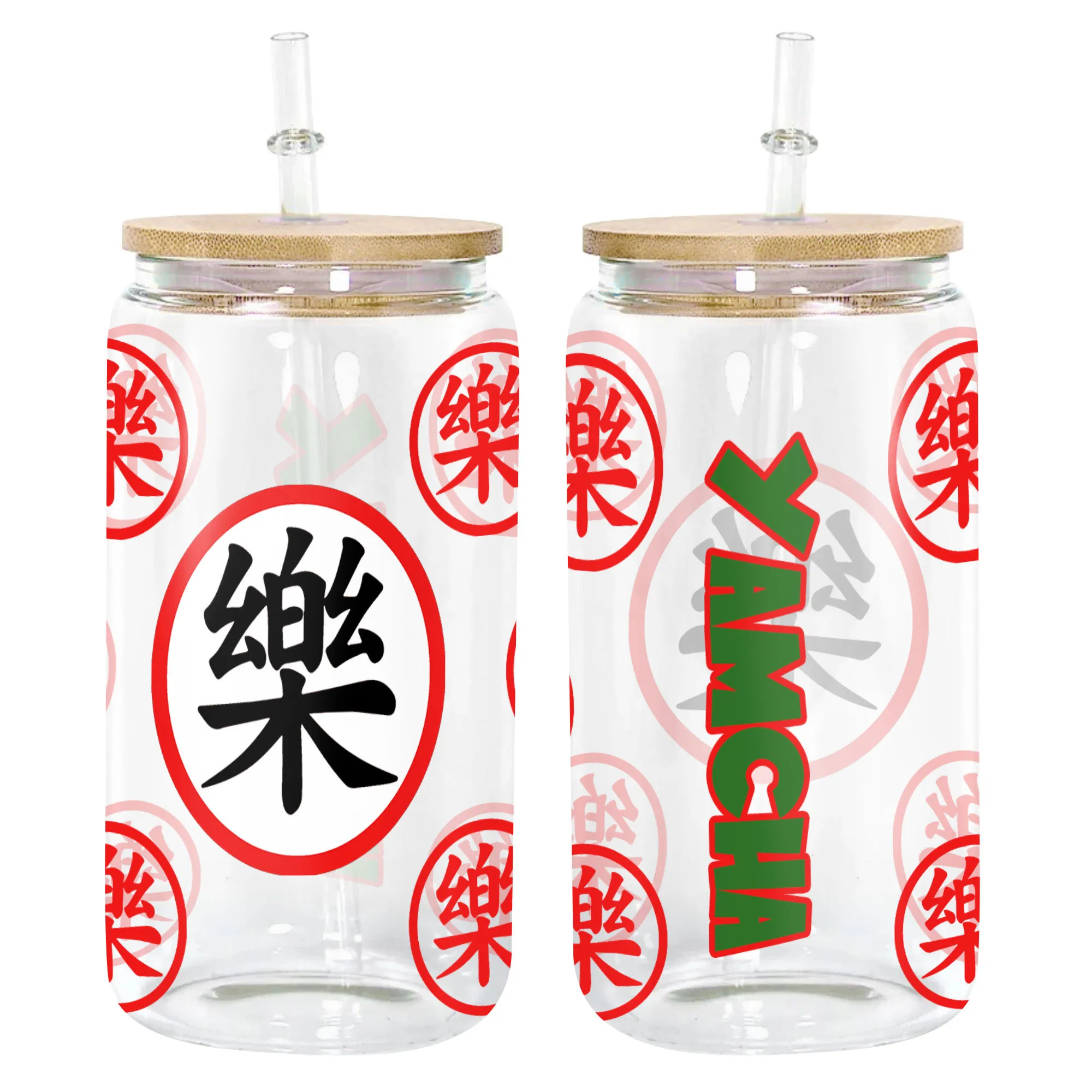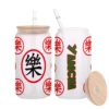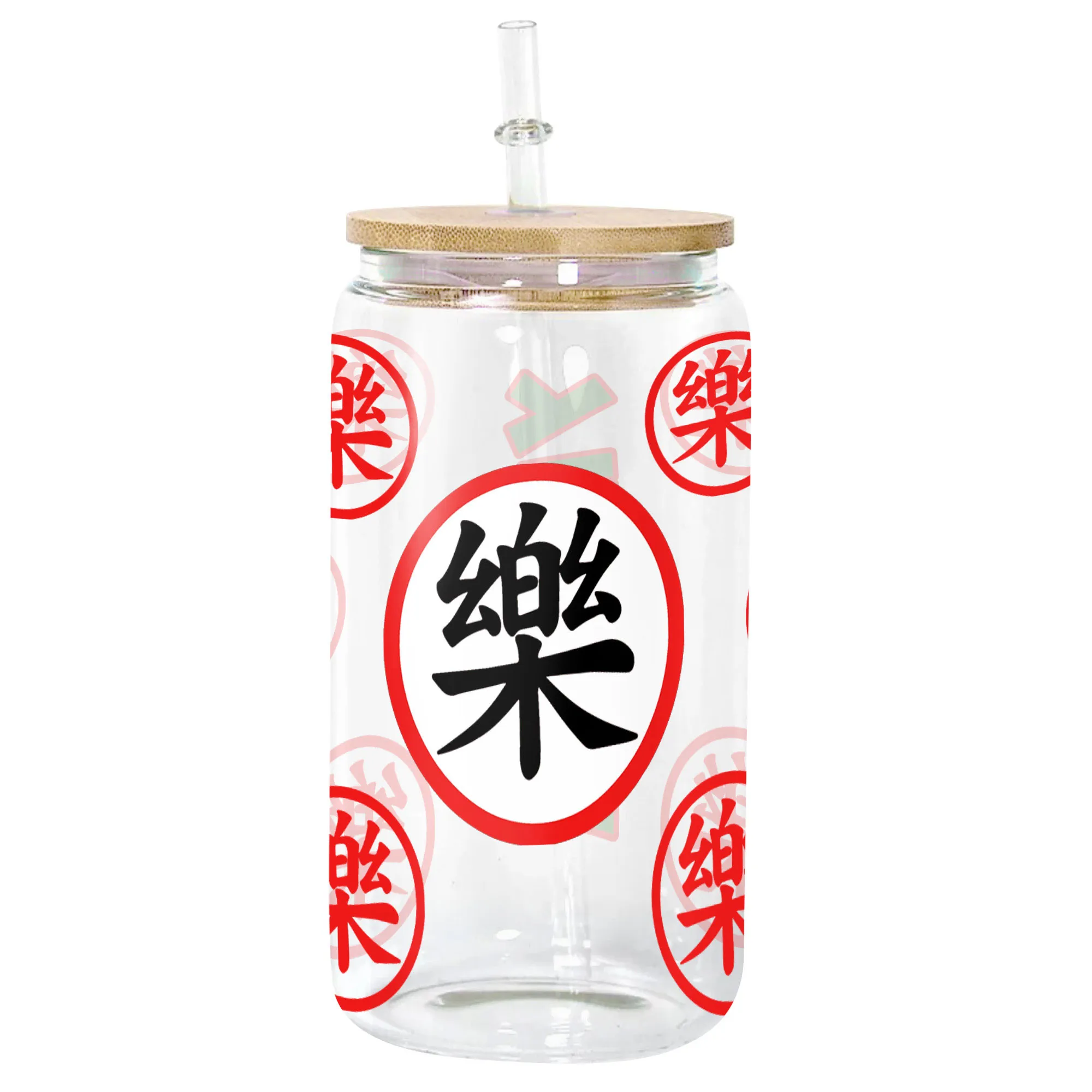 All of our Glass Can 16oz are custom-made-to-order and handcraftedwith high-quality glass material and accompanied by a convenient hard plastic straw and a wooden lid with a convenient hold for straw.