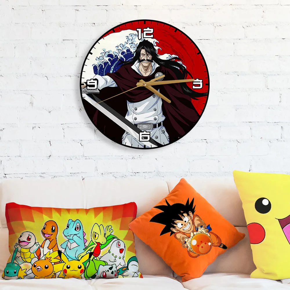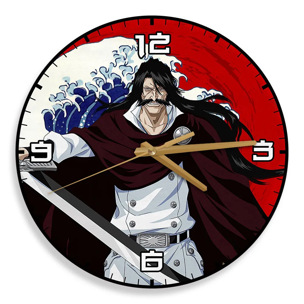 Yhwach Wooden Wall Clock Kanagawa Wave Red Sun Anime