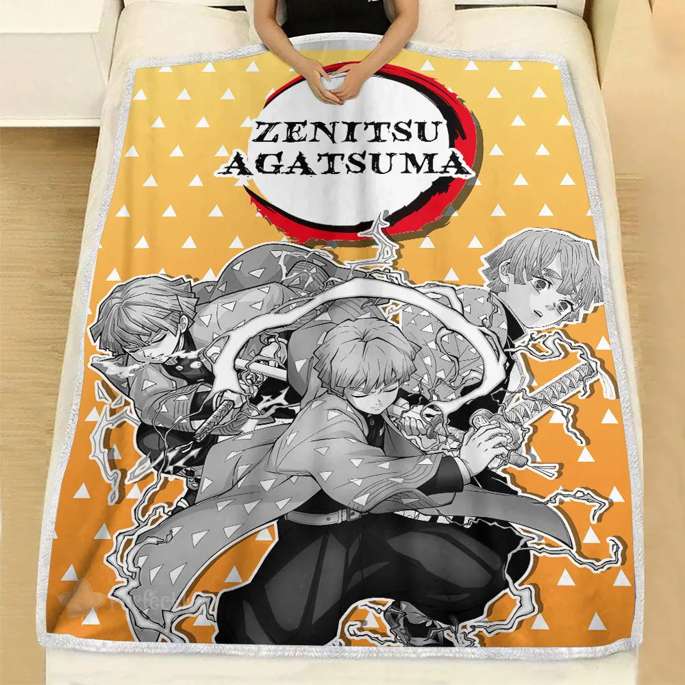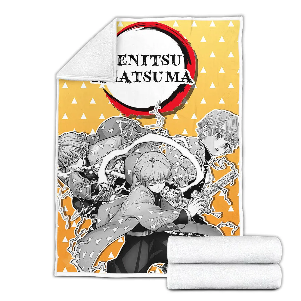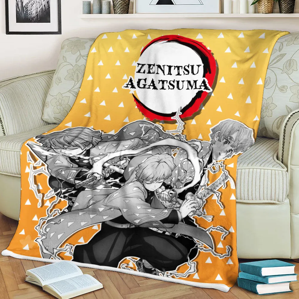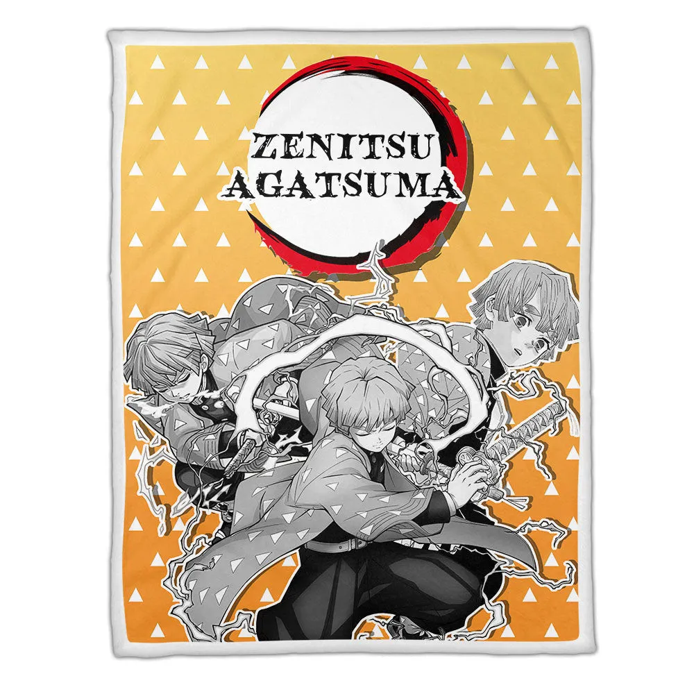 Zenitsu Fleece Blanket Custom Demon Slayer Anime Uniform Costume Mix Manga Style