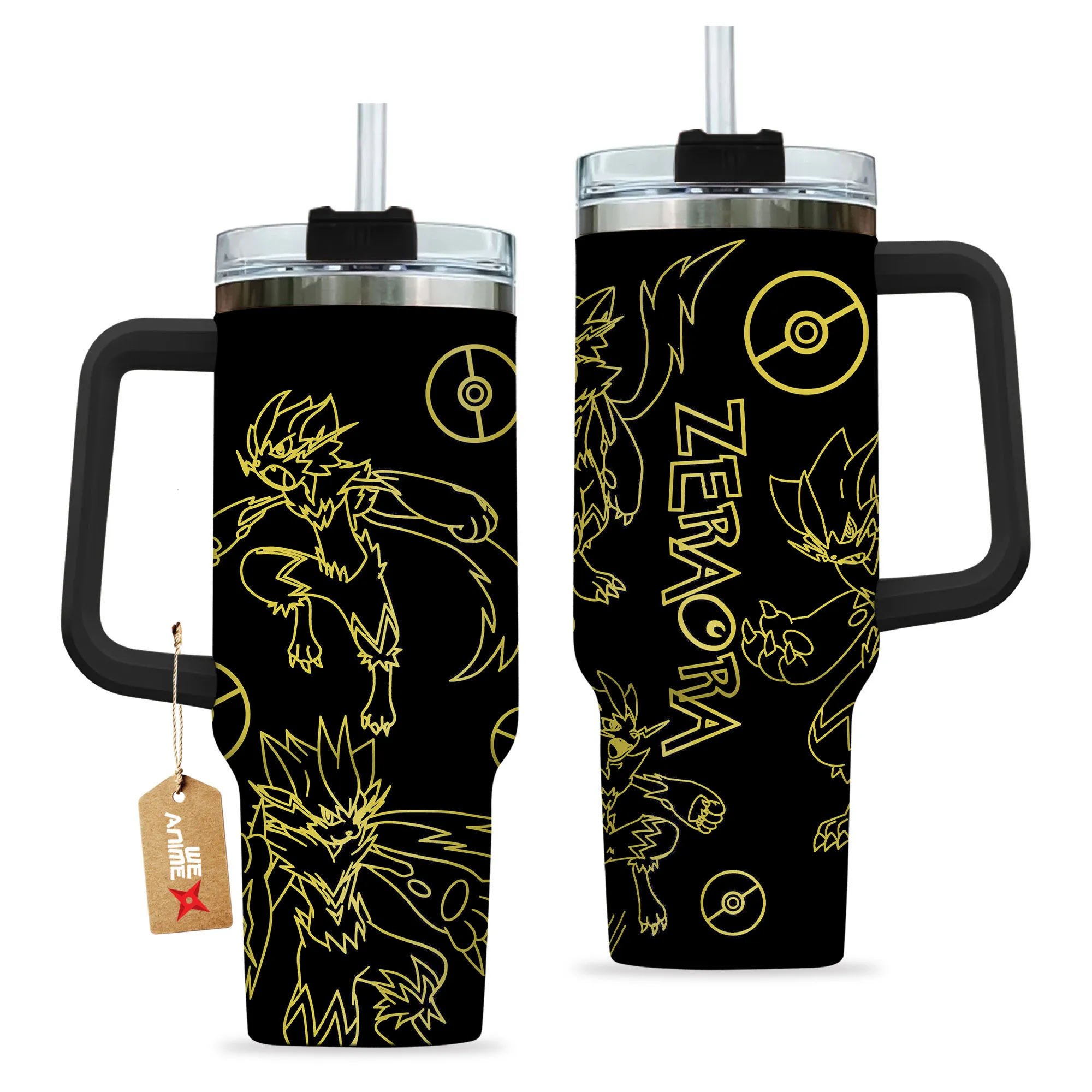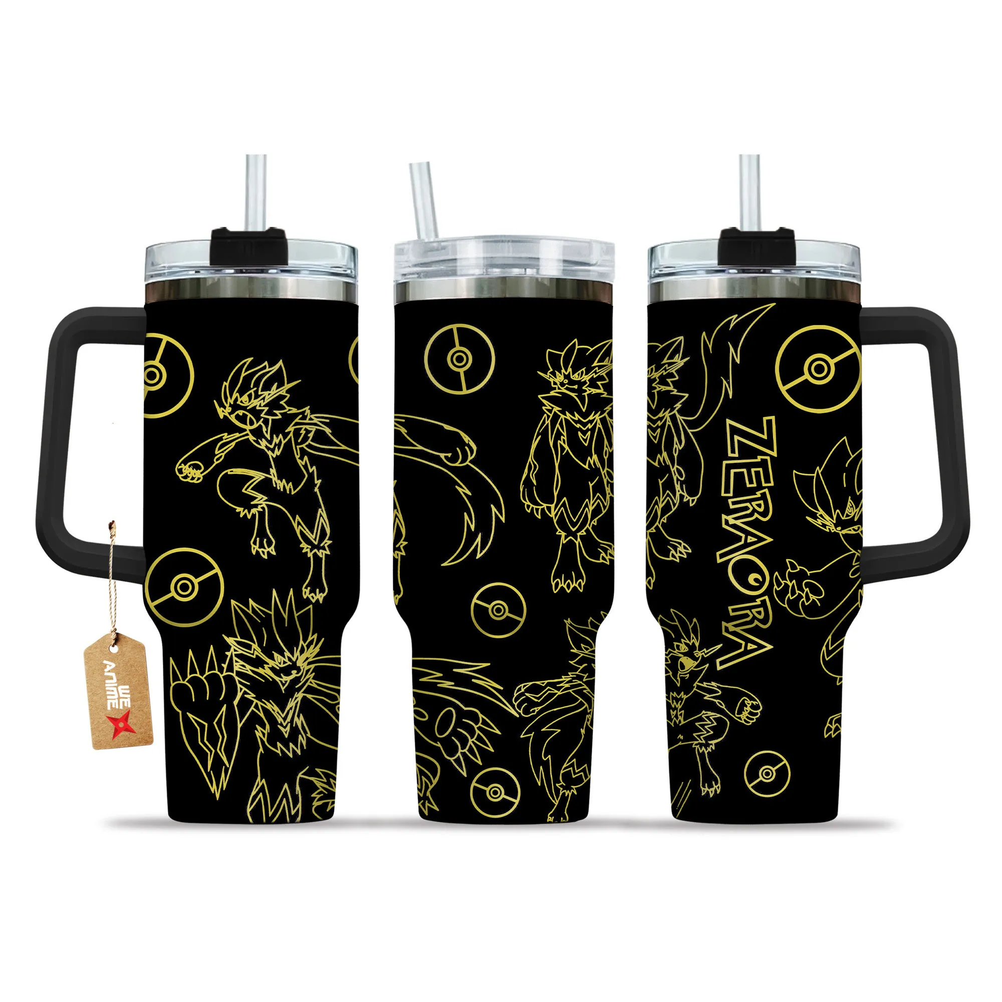 Zeraora 40oz Tumbler Cup With Handle Custom Personalized NameHeinkel Wolfe 40oz Travel Tumbler With Handle Custom Anime Accessories